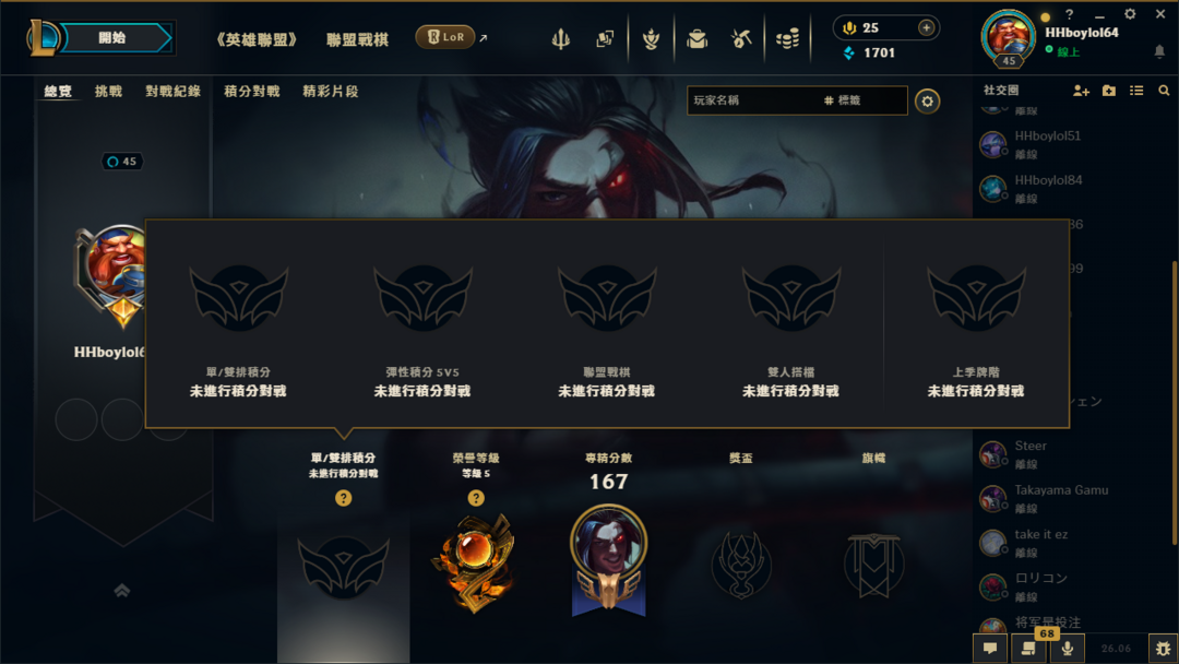装备描述:日服账号 45级 23皮肤 124英雄 禁止开挂号内资源可随意使用 可排位目前0排位记录可虐菜