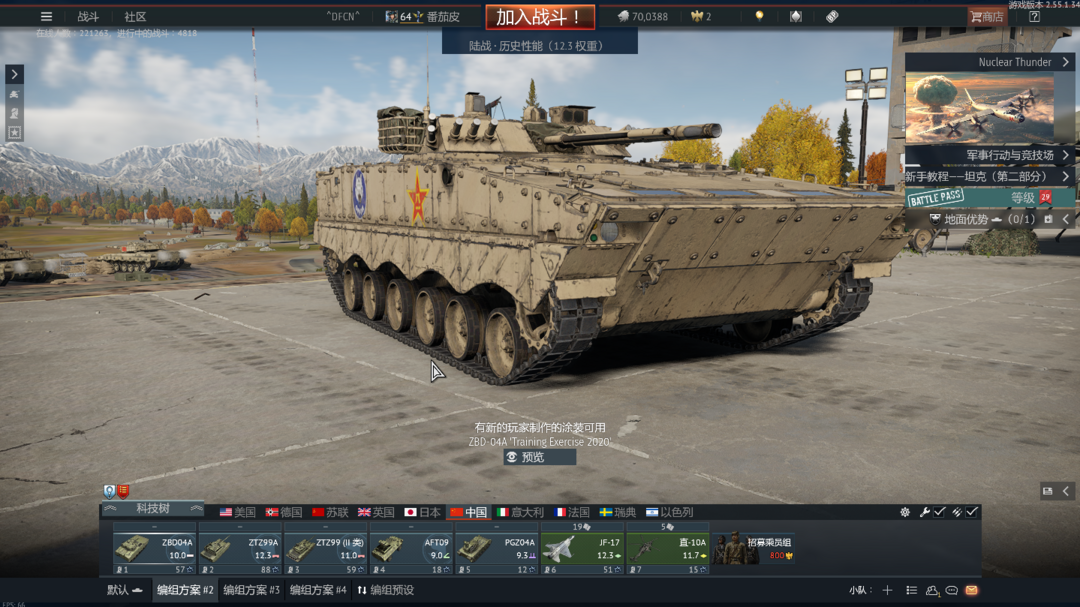 中陆12.3,99A,04A,有金车96AP,中空12.3,JF17枭龙,金币载具J7D,直十A