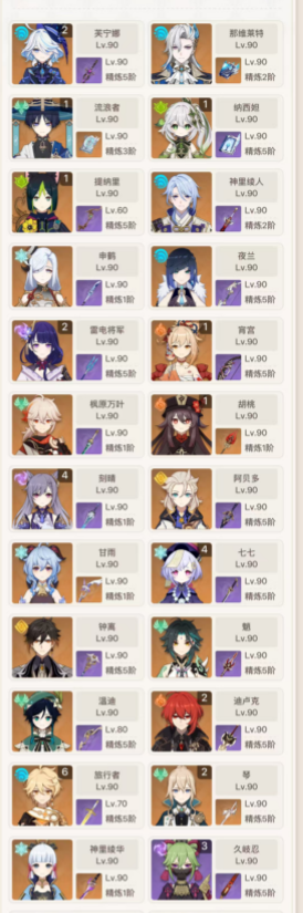 官服高练度64金神鶴万心 胡桃队 散兵队 草神绽放 配队齐全毕业乱杀