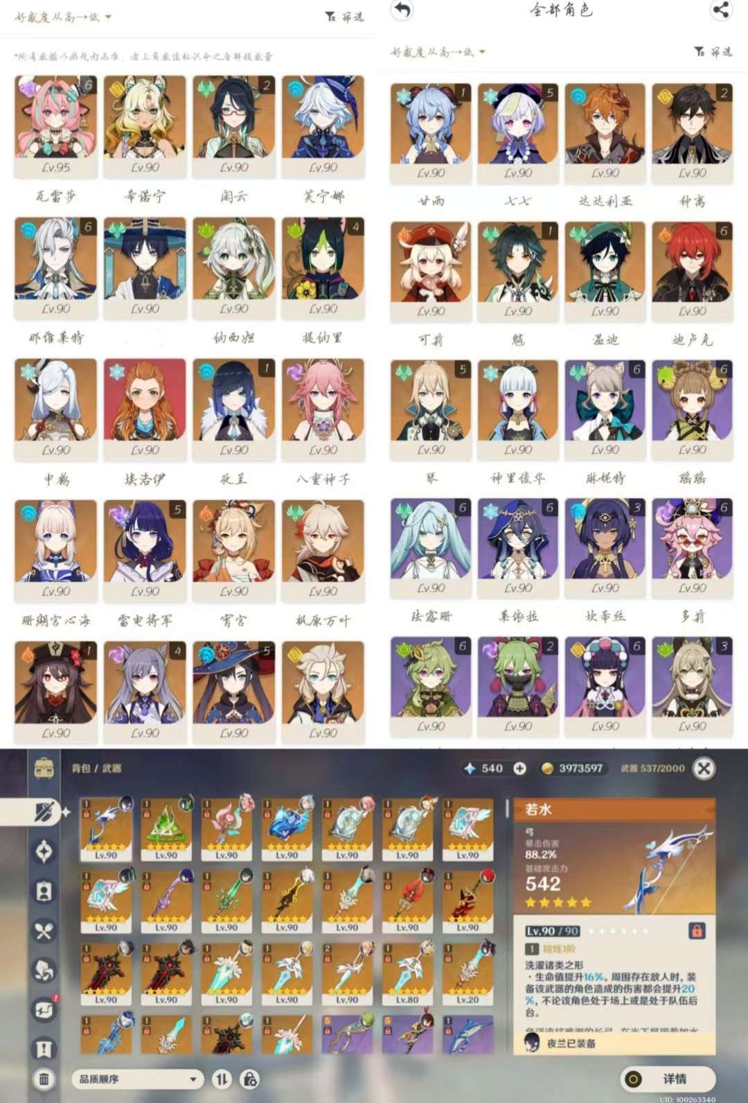 满命瓦雷莎+专武❀满命那维莱特+专武❀五命雷神二命钟离闲云一命夜兰万叶高命五神+专武看图