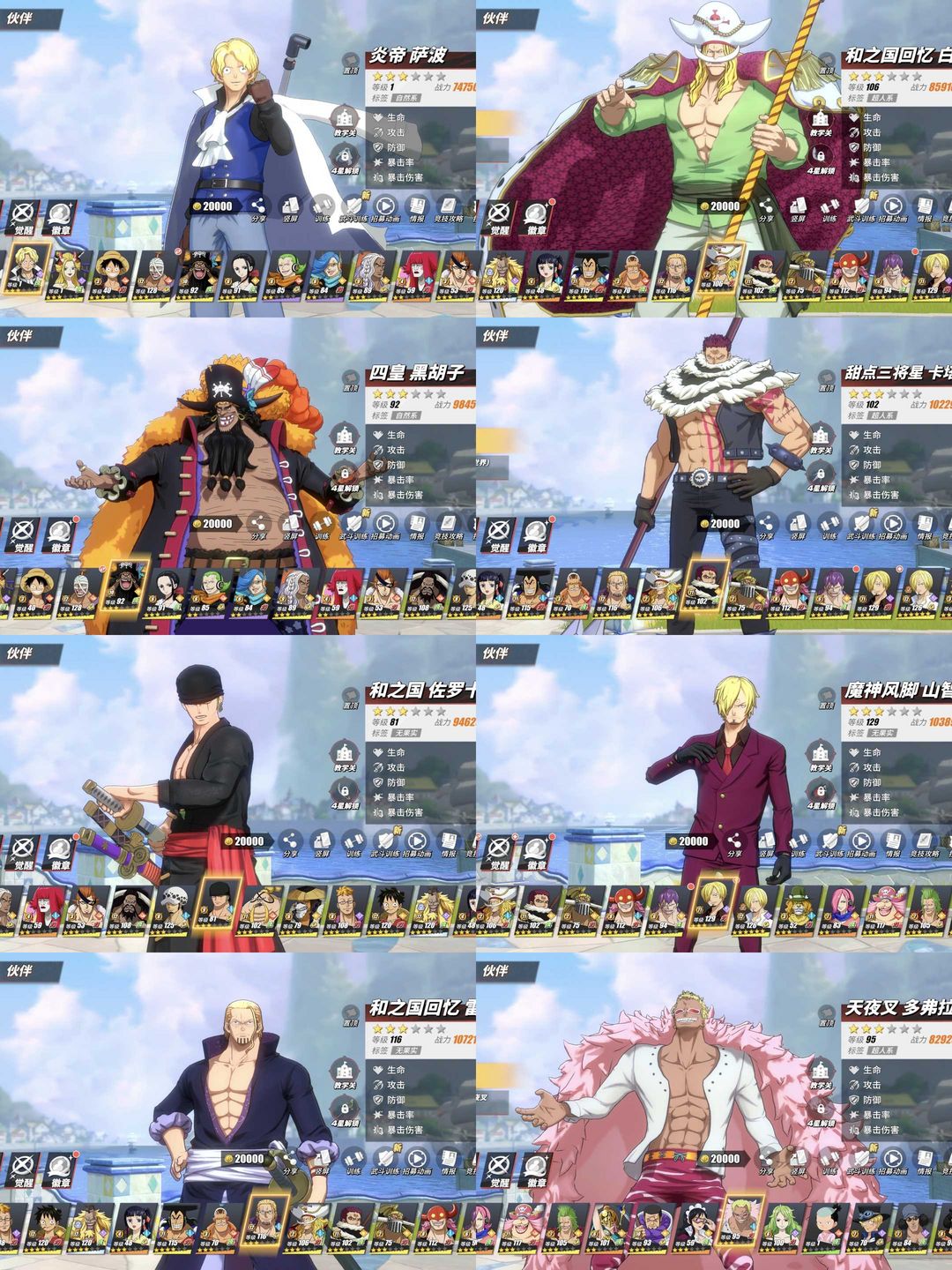 【4399版本】9强者/3个98友情技♉尼卡路飞♉萨博/黑胡子/卡塔库栗/魔神山治/明哥/和之国索隆