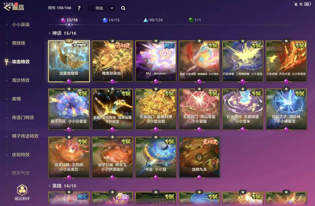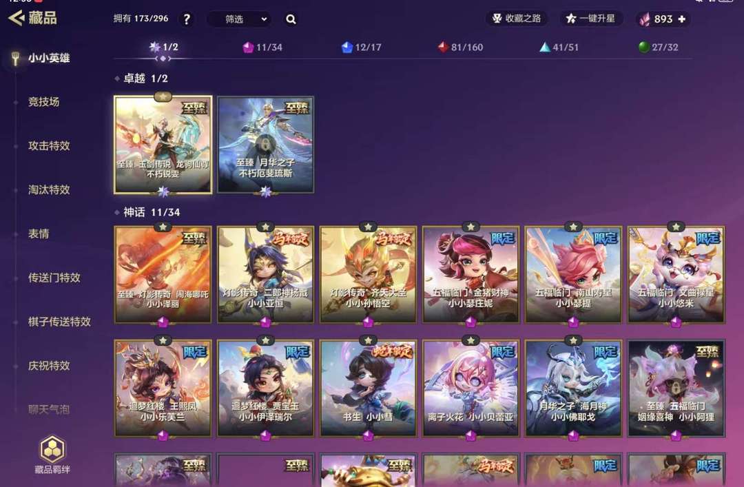 装备描述:至臻,玉剑传说不朽瑞雯 至臻,灯影传奇小小泽丽 迴梦红楼贾宝玉、王熙凤 灯影传奇齐天大圣,二郎神 离子火花贝雷亚 五福临门南山寿星瑟提,文曲巨星悠米 书生小小慧 My Answer 百花吟 月宴 离子火花永亮不熄震击演唱会 加里奥登场 俺老孙来也