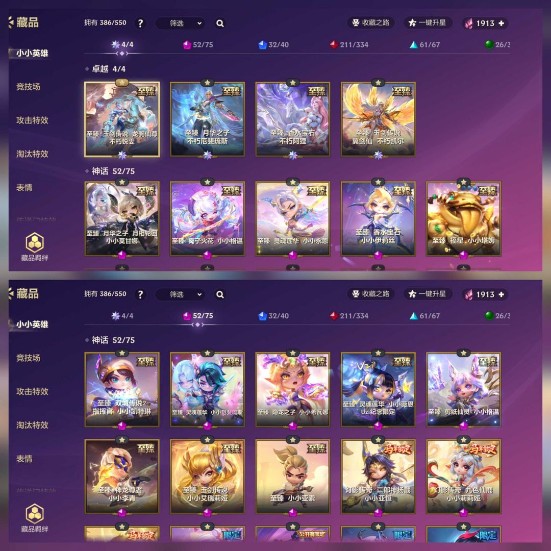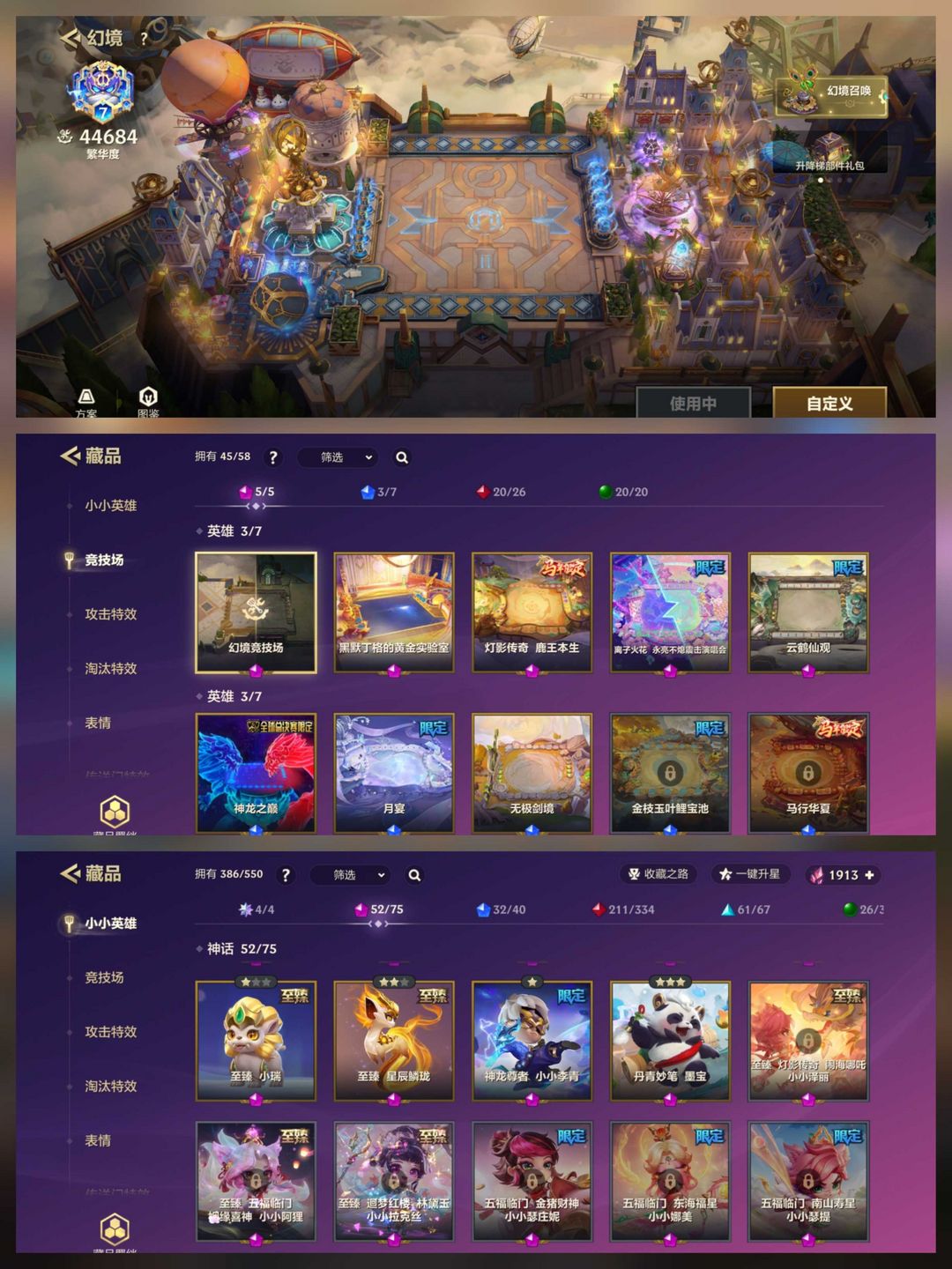 VIP12♥不朽锐雯♥不朽阿狸♥不朽凯尔♥不朽厄斐琉斯♥4个卓越♥19个至臻♥满幻境棋盘♥金铲铲特效