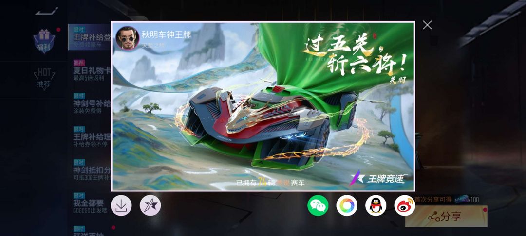 租3送1租5送2租7送3角色名:秋明车神王牌