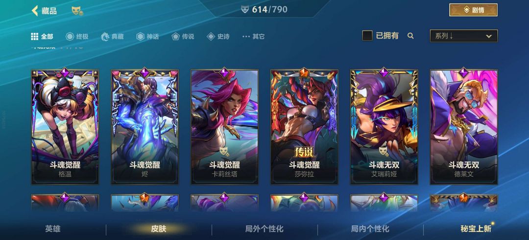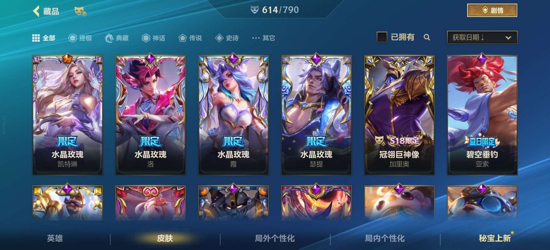 615皮肤 12w收藏分金名号 全套时空探索 战旗面甲 劫典藏 神话装叉神器 泸溪河