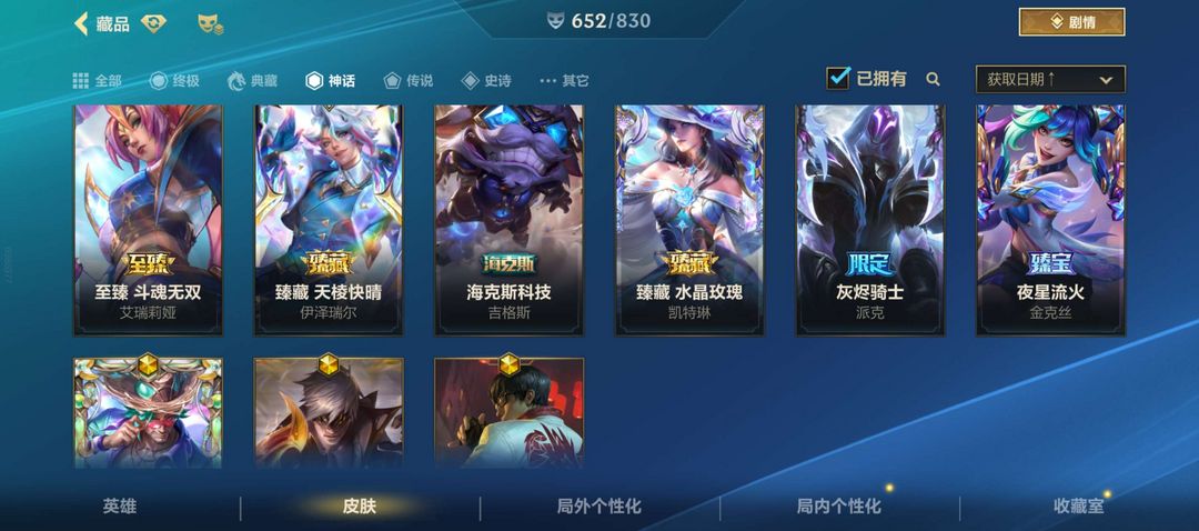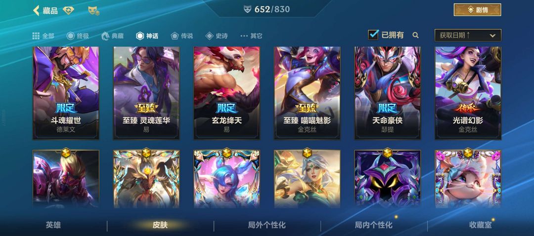 ❤总皮肤655个,❤终极永恩,❤两典藏劫、莎弥拉,❤33神话,❤86传说,❤水晶系列24差拉克丝