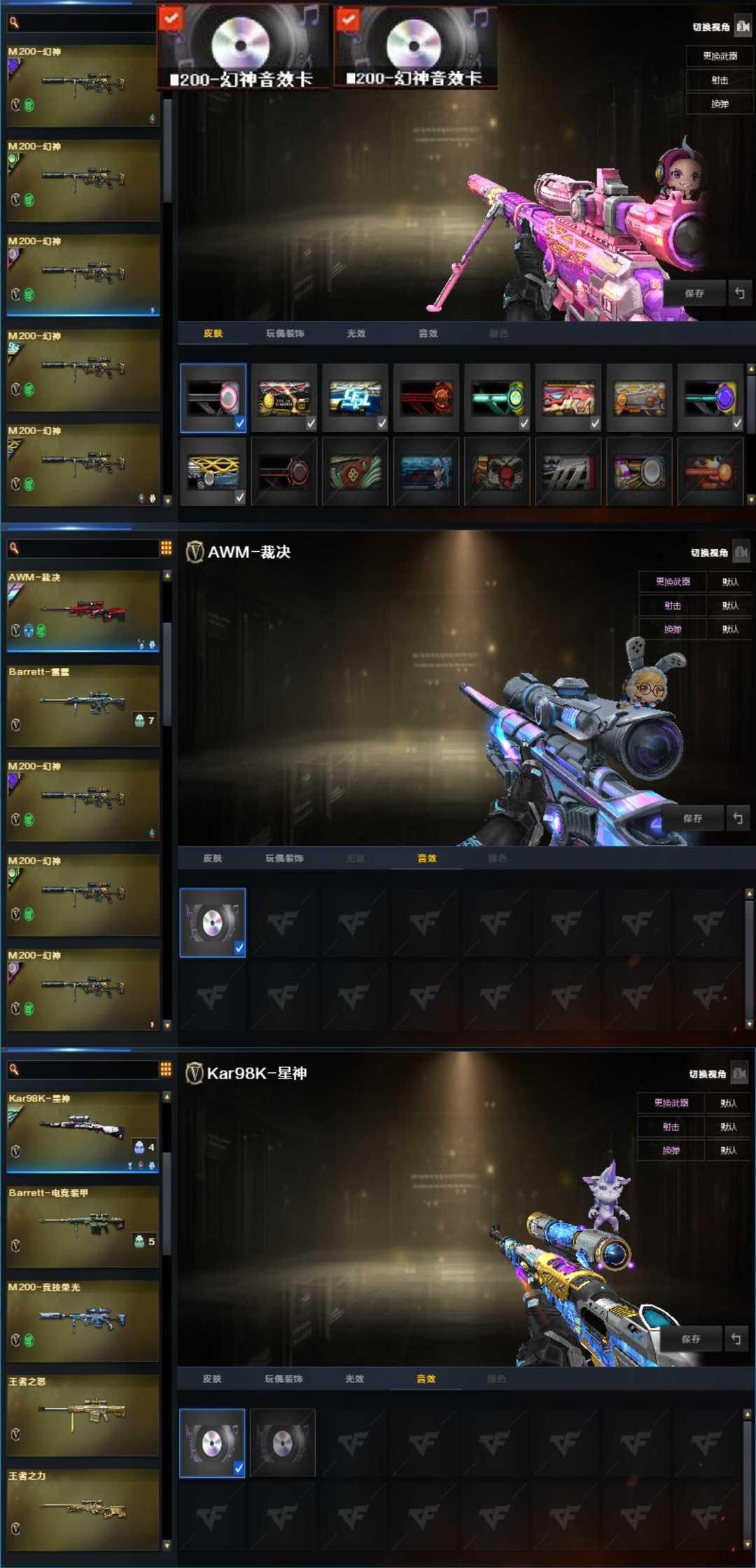 大师4♥传说女帝影煞G36幻影银翼♥宠儿⑦幻神⑨皮满音效秘银裁决冠军星神冠军薇特刃♥手枪顶配蝶刃x2