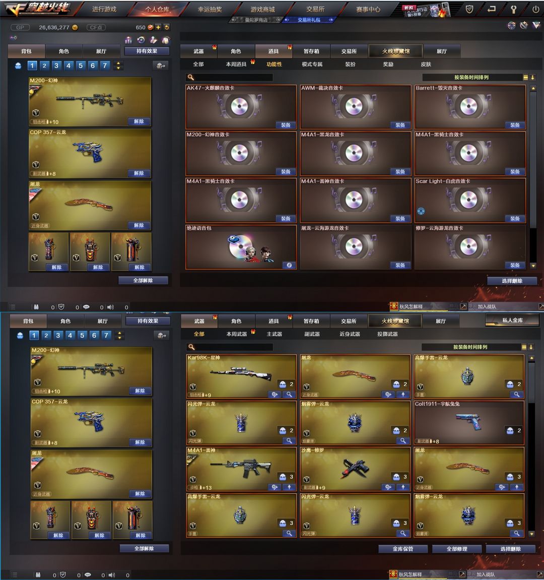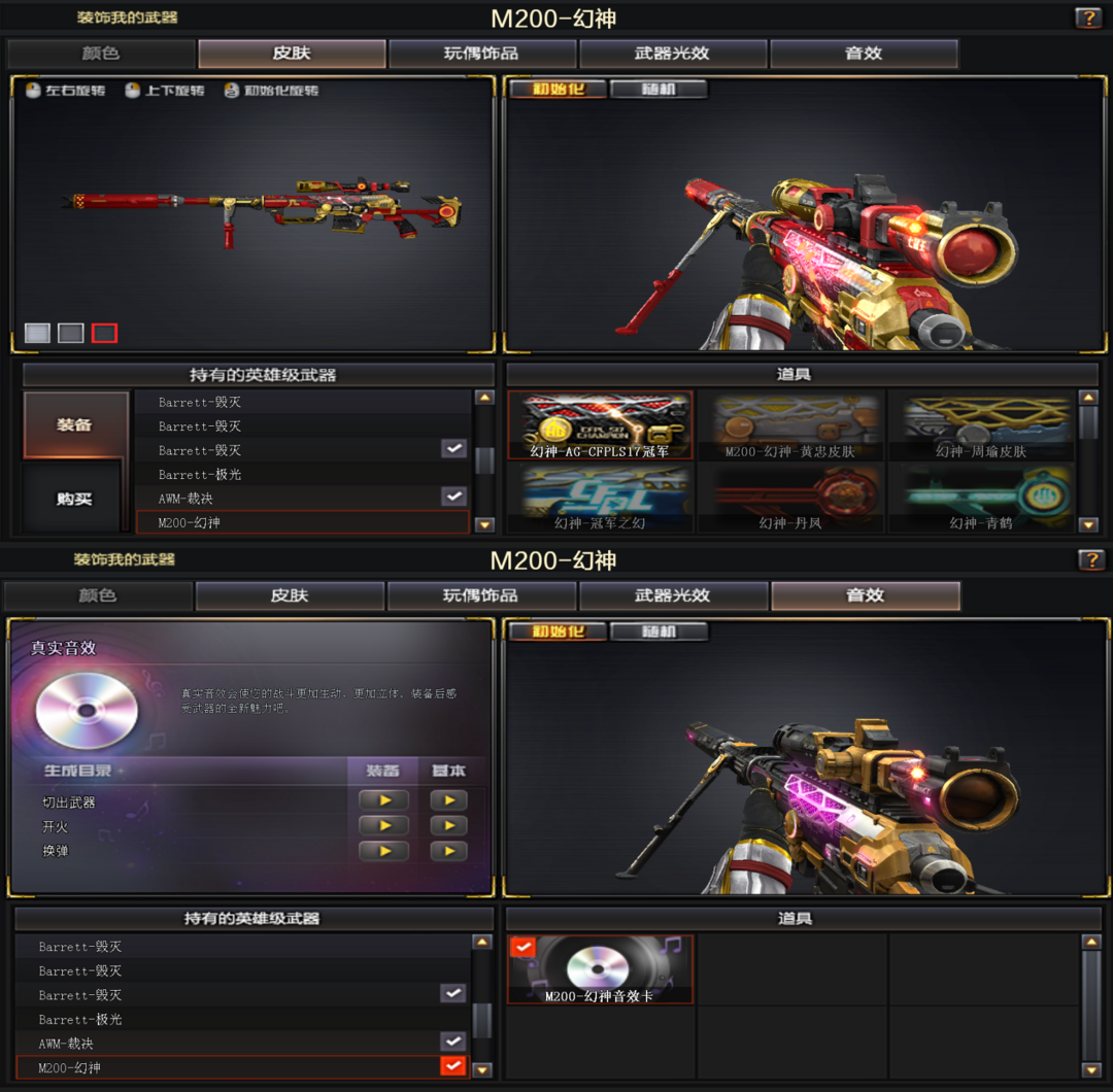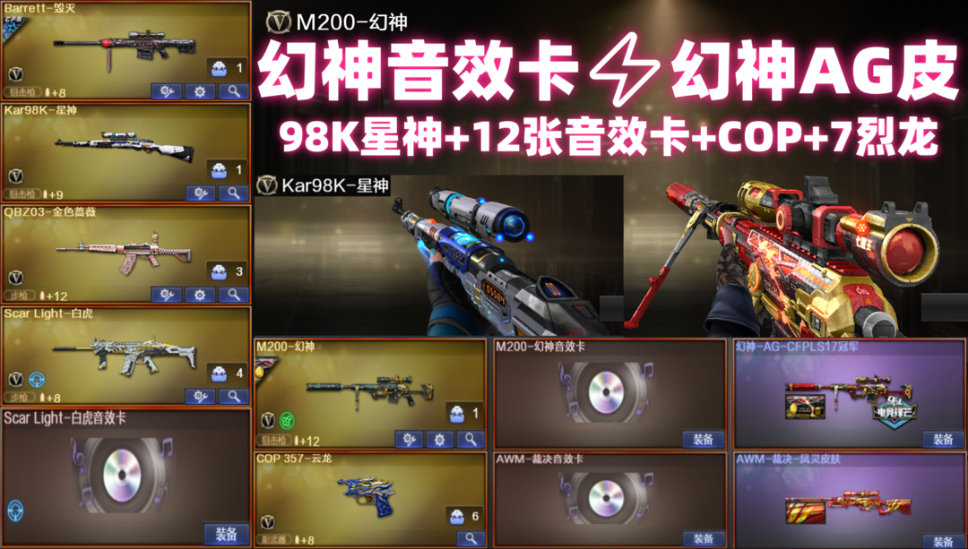 M200-幻神音效卡AG冠军皮肤三件套❥98k星神COP云龙+金色蔷薇+白虎带音效卡➕生化6烈龙盘龙