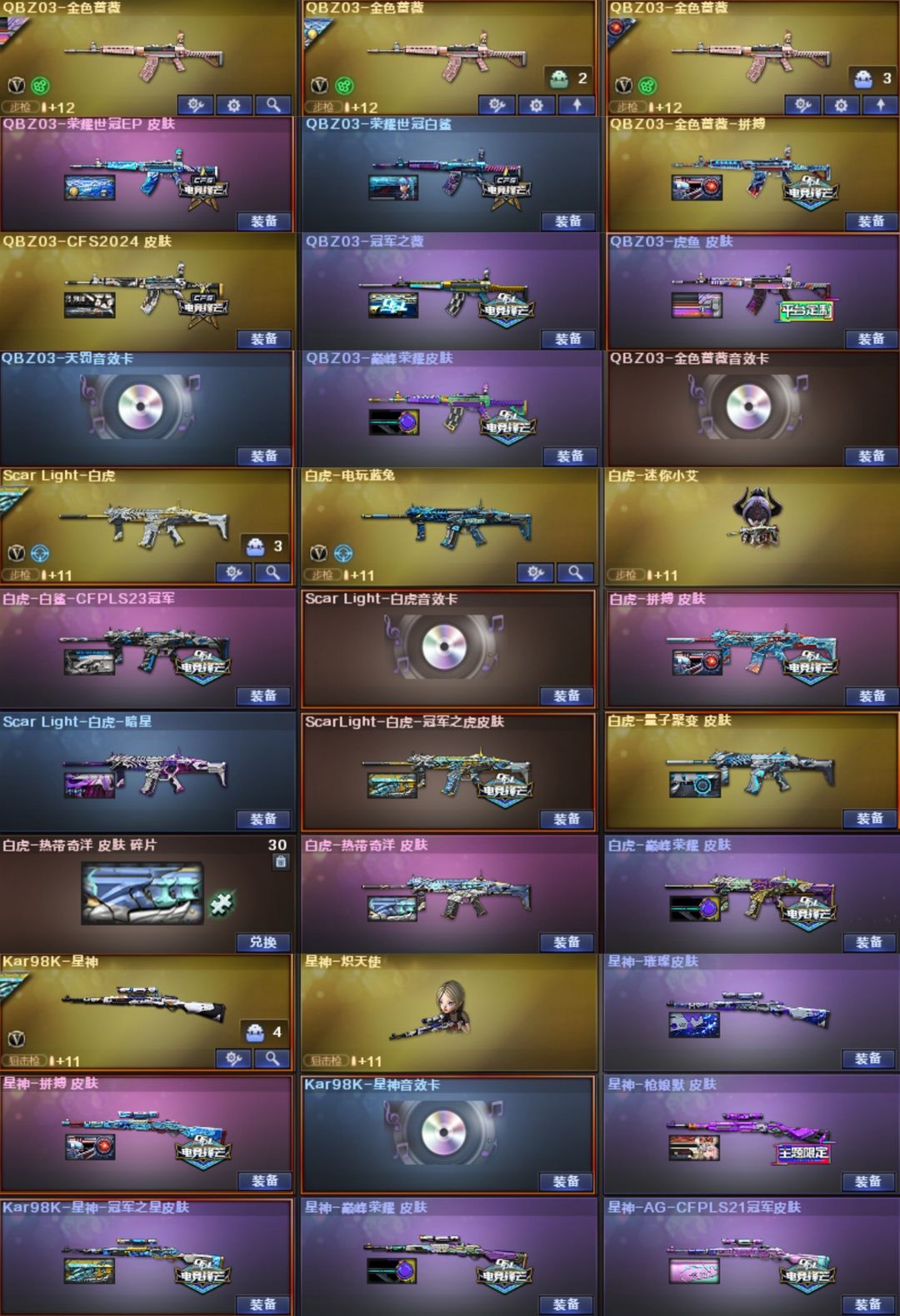 双神威星骇幽瞳圣谕幻影天戎天袭⭐幻神卡KZ星火EP13皮裁决卡7皮⭐QBZ虎鱼EP9皮白虎白鲨6皮