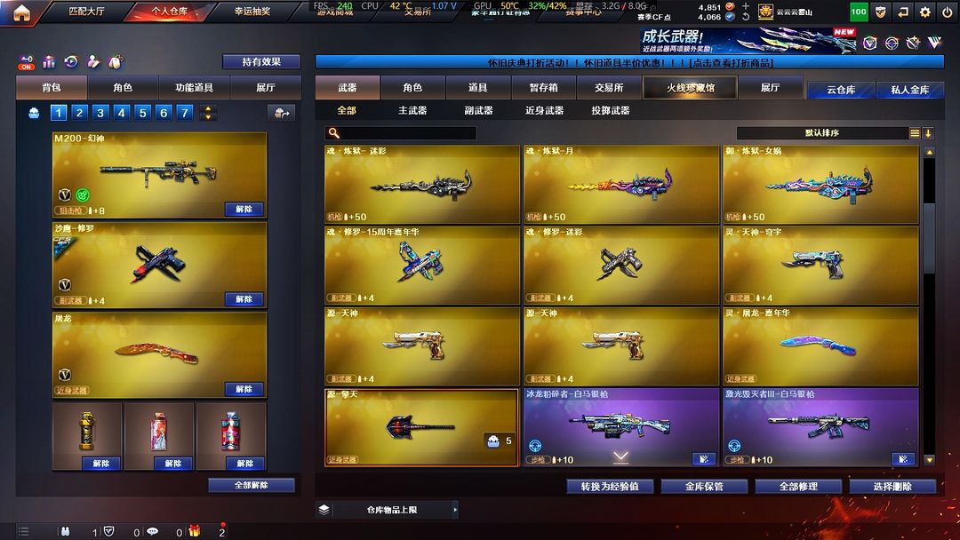 45V✨6烈4炼狱生化道具齐全✨M200幻神✨qbz蔷薇+裁决✨基础V齐全✨街机小灰机✨