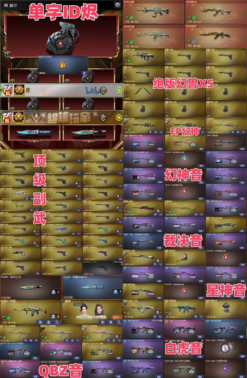 120豆❤单字ID烬❤妮妮小刀EP全套❤幻兽X5❤幻神10皮音❤裁决6皮音❤星神4皮音❤G36满副武