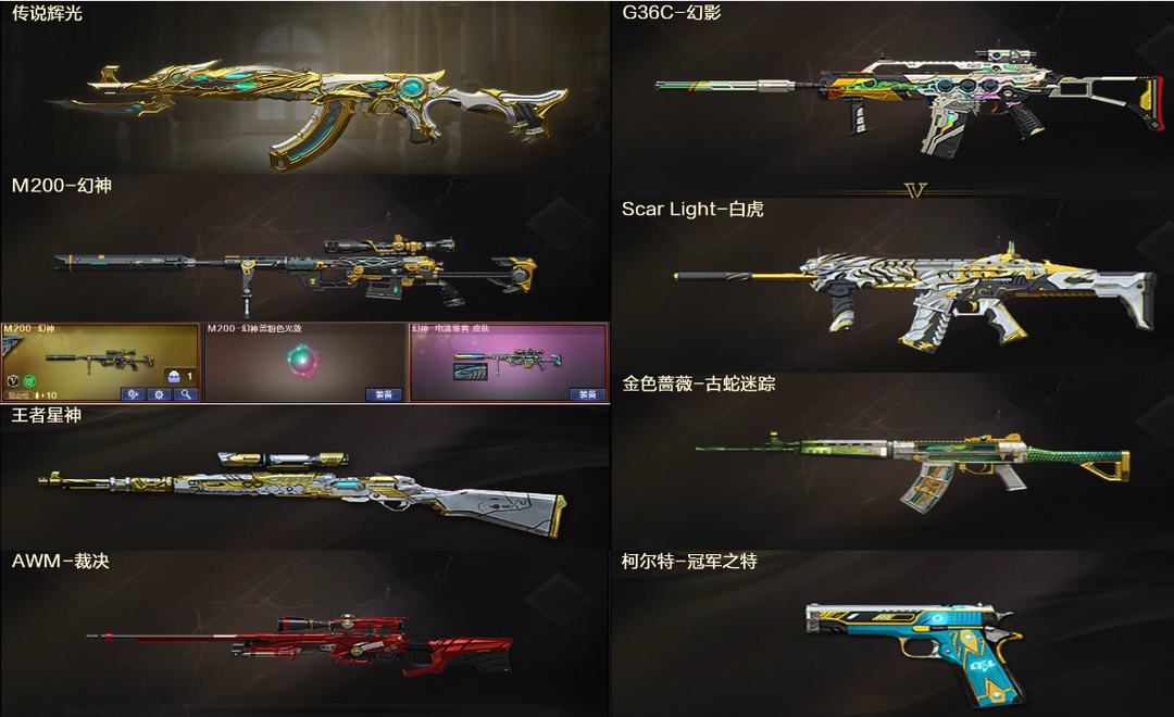 传说辉光❤幻神电流骇客光效+王者星神裁决❤G36C幻影白虎金色蔷薇+冠军之特❤4防王者迷迭香
