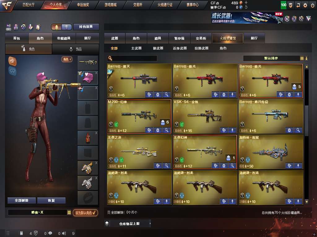 装备描述:王者幻神,幻神,王者白虎,雷神荣耀皮肤,QBZ白鲨皮肤,毁灭音效卡带皮肤,火麒麟音效卡带皮肤,5猎龙,6天神修罗,爆破全装