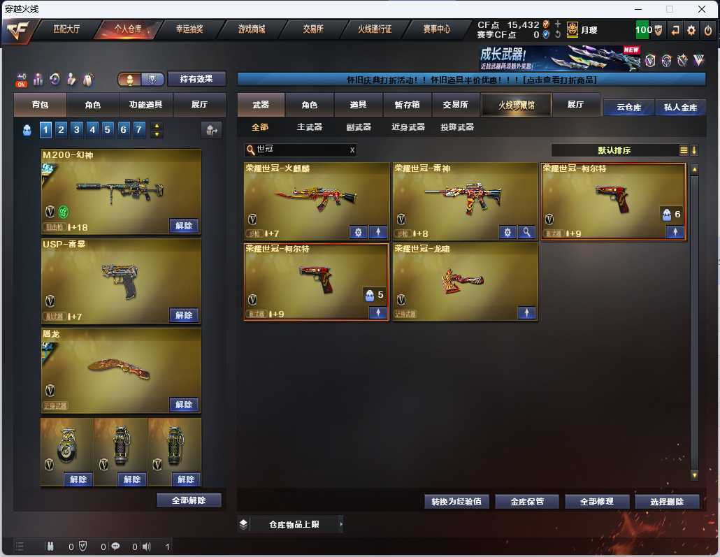 4把幻神➕音效卡❤️王者魅影春❤️职业经理❤️雷神宠儿❤️世冠套❤️雷暴全套❤️