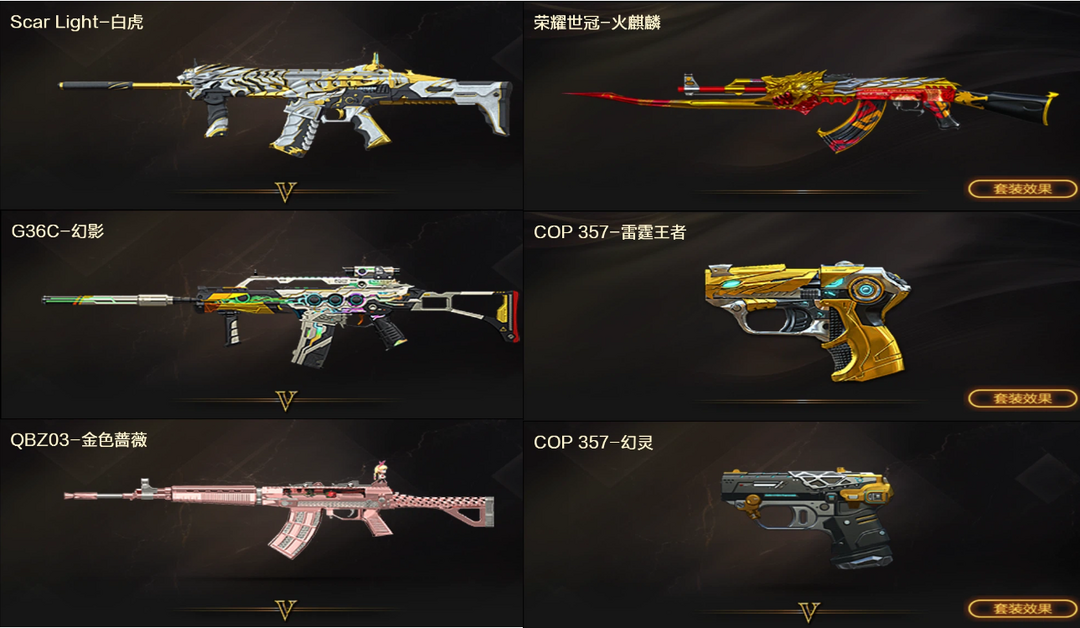 传说辉光4防女帝❤幻神宠儿+裁决叶芒音效卡+王者星神❤幻影白虎QBZ蔷薇+冠军之特2COP鲨臂❤貂蝉