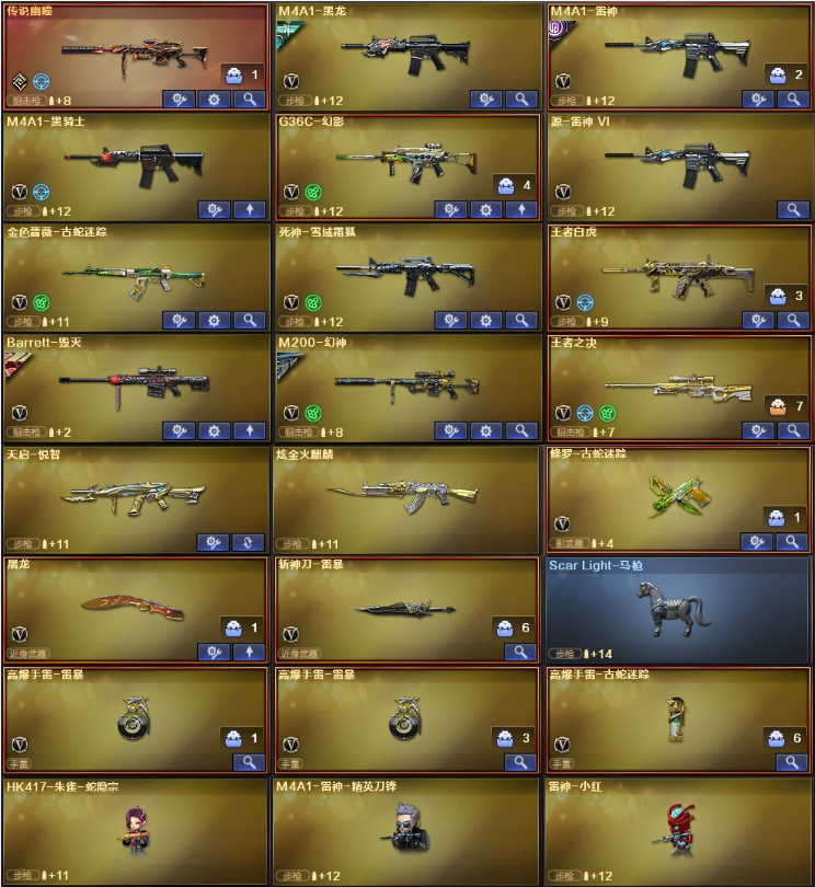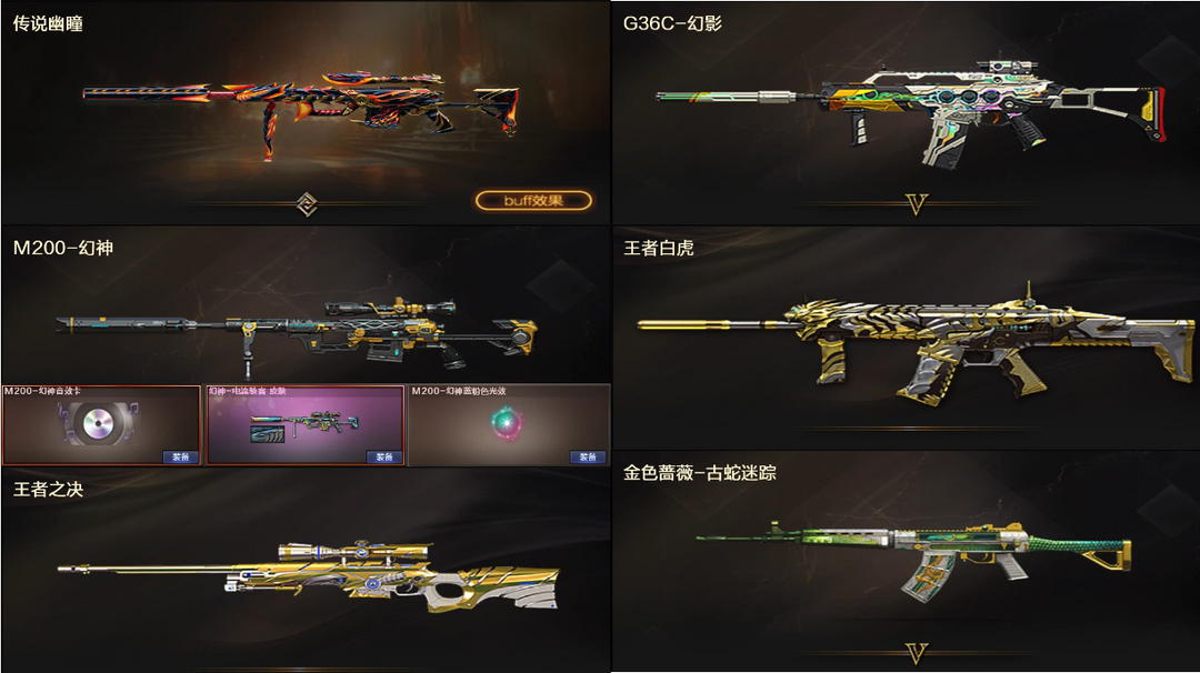 传说幽瞳❤幻神电流骇客音效卡光效+王者裁决❤G36C幻影金色蔷薇王者白虎❤4防雨棠+3防隼曼珠沙华