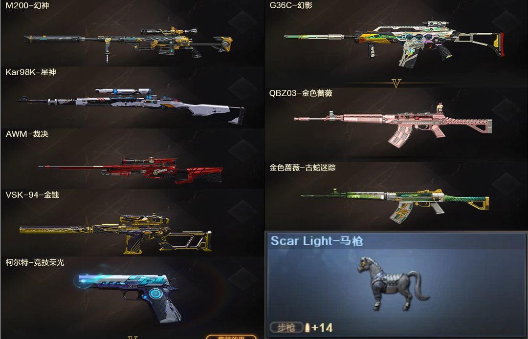 爆破装❤幻神星神裁决金蚀❤G36C幻影QBZ蔷薇白虎马枪+竞技柯尔特❤3防关小雨隼+雷神毁灭修罗屠龙