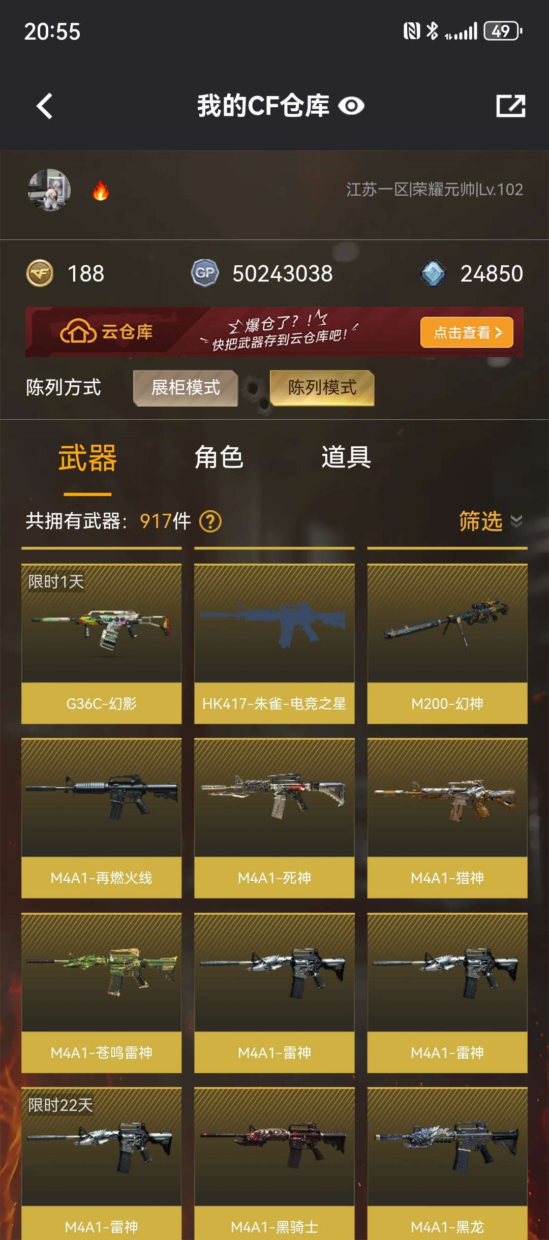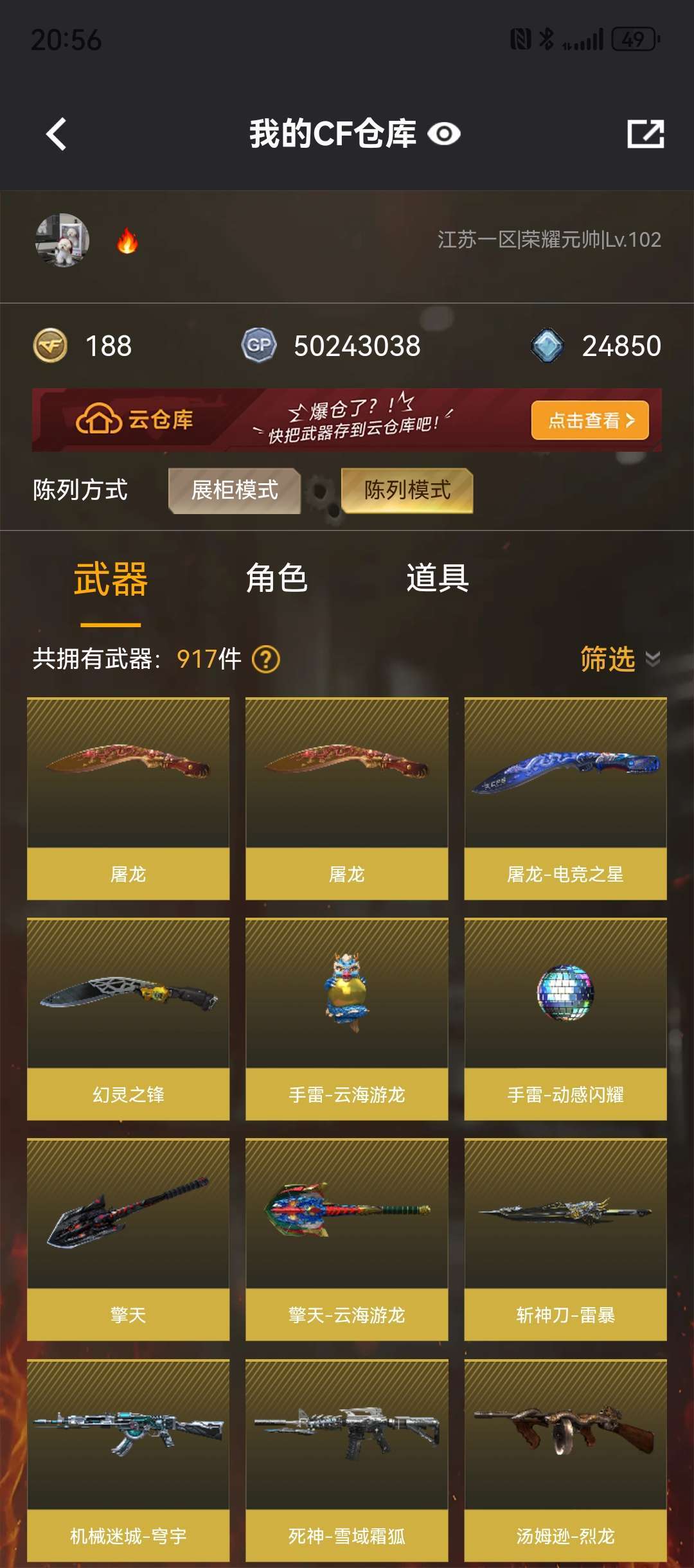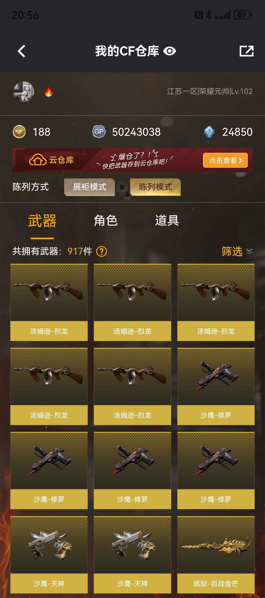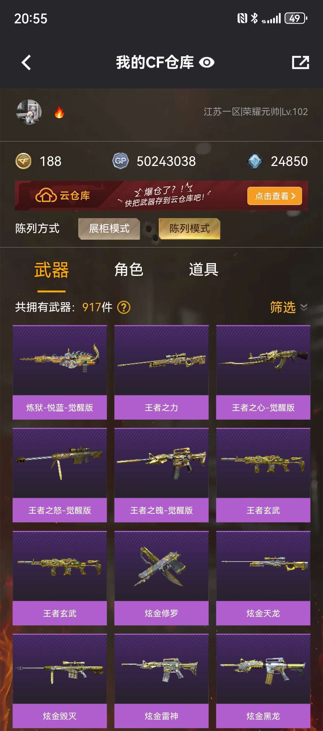 装备描述:全装号白虎九尾/幻神AG皮肤加音效卡/QBZ皮肤白鲨世冠拼搏/冥王usb两把雷霆cop/毒蜂两把玄武/四防角色/生化专用角色/雷霆手雷/雷暴手雷/玄爆手雷四套