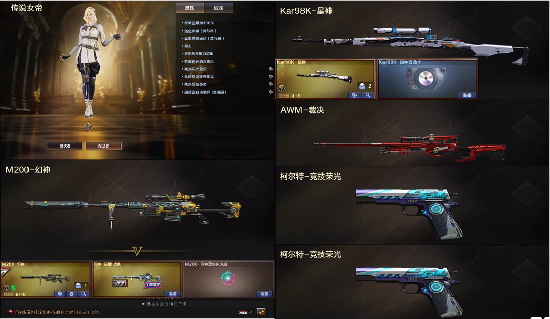 传说女帝4防❤幻神星耀+星神音效卡+裁决❤幻影破浪+白虎QBZ蔷薇天戎朱雀+2柯尔特❤4防王者魅影