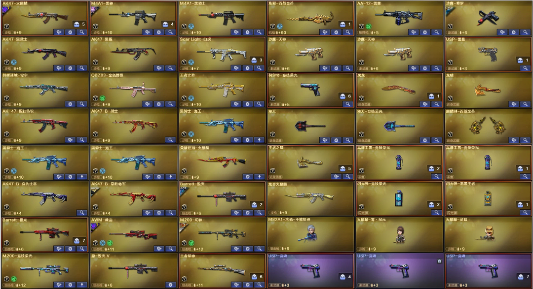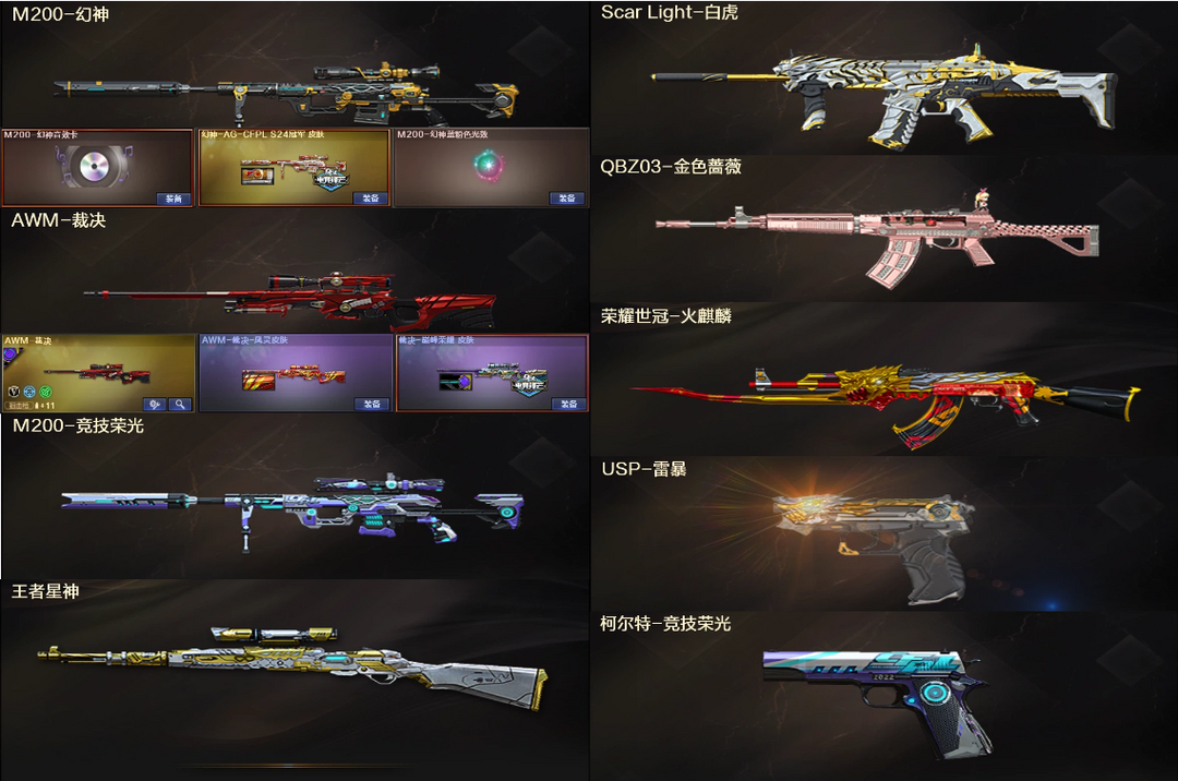 爆破❤幻神新AG竞技音效卡+裁决巅峰荣耀凤灵+王者星神❤QBZ蔷薇白虎+USP雷暴柯尔特❤3防云悠悠