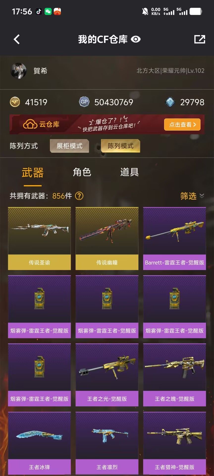 装备描述:传说圣谕,传说幽瞳,传说星骇,幻神(带音效卡),星神(有传说皮),毁灭(带音效卡),金色蔷薇(带音效卡),雷神(有传说皮),火麒麟(带音效卡),幻影,天戎,2雷暴,awm裁决(带音效卡)cop堕天神,cop雷霆,usp冥王,冠军之特,世冠柯尔特,2竞技荣光柯尔特,蝴蝶刀,6烈,3加特林炼狱1盘龙,玄豹scar,王者手雷十多套,斩神刀雷暴,4屠龙,3擎天,满级八面凌龙,狗狗枪scar,青龙白虎朱雀玄武全有(朱雀玄武有音效卡),m200竞技荣光,天罚(带音效卡),天启,3雷霆喷子,9a91烈火,9a91冰魄,王者风势,王者猎神,王者之破,王者之光,角色有关小羽,鹰,电竞教官云悠悠,零,葵,传说星骇等等,有超核玩家喷涂