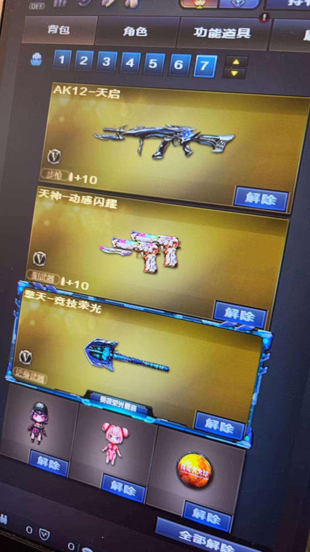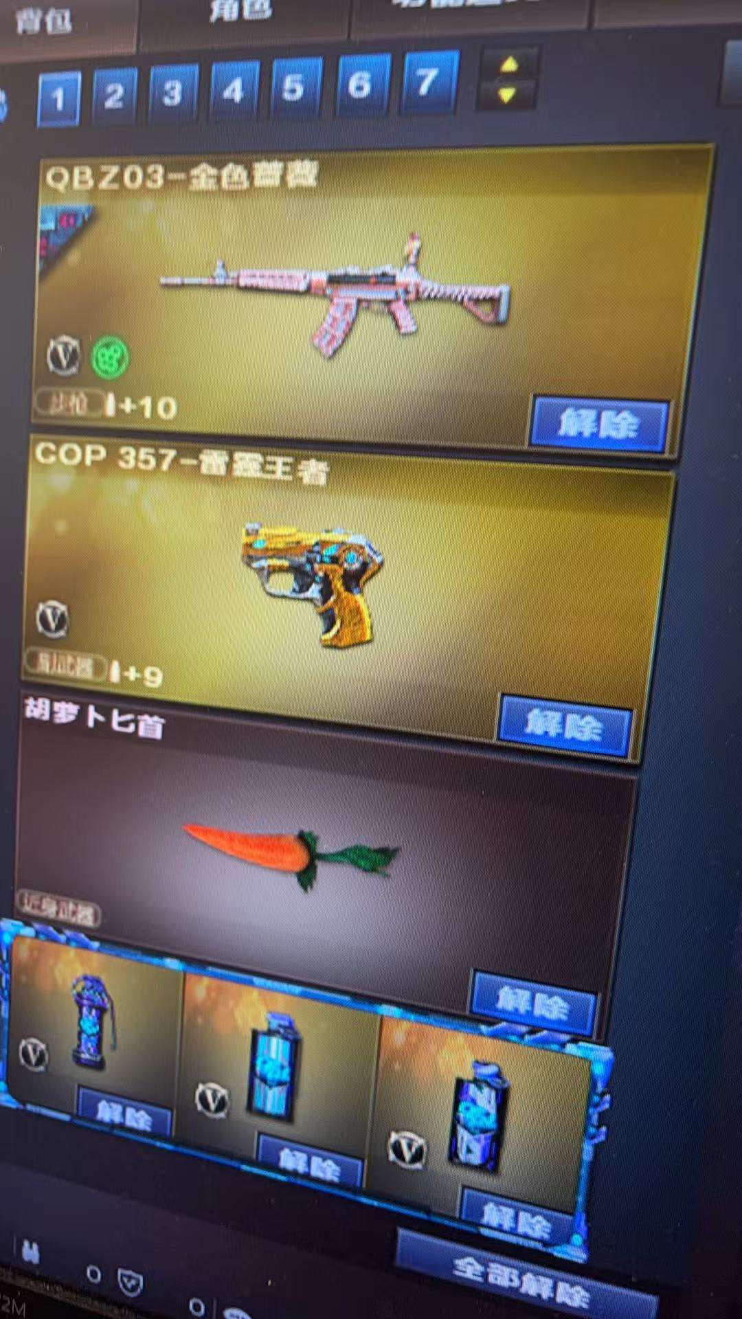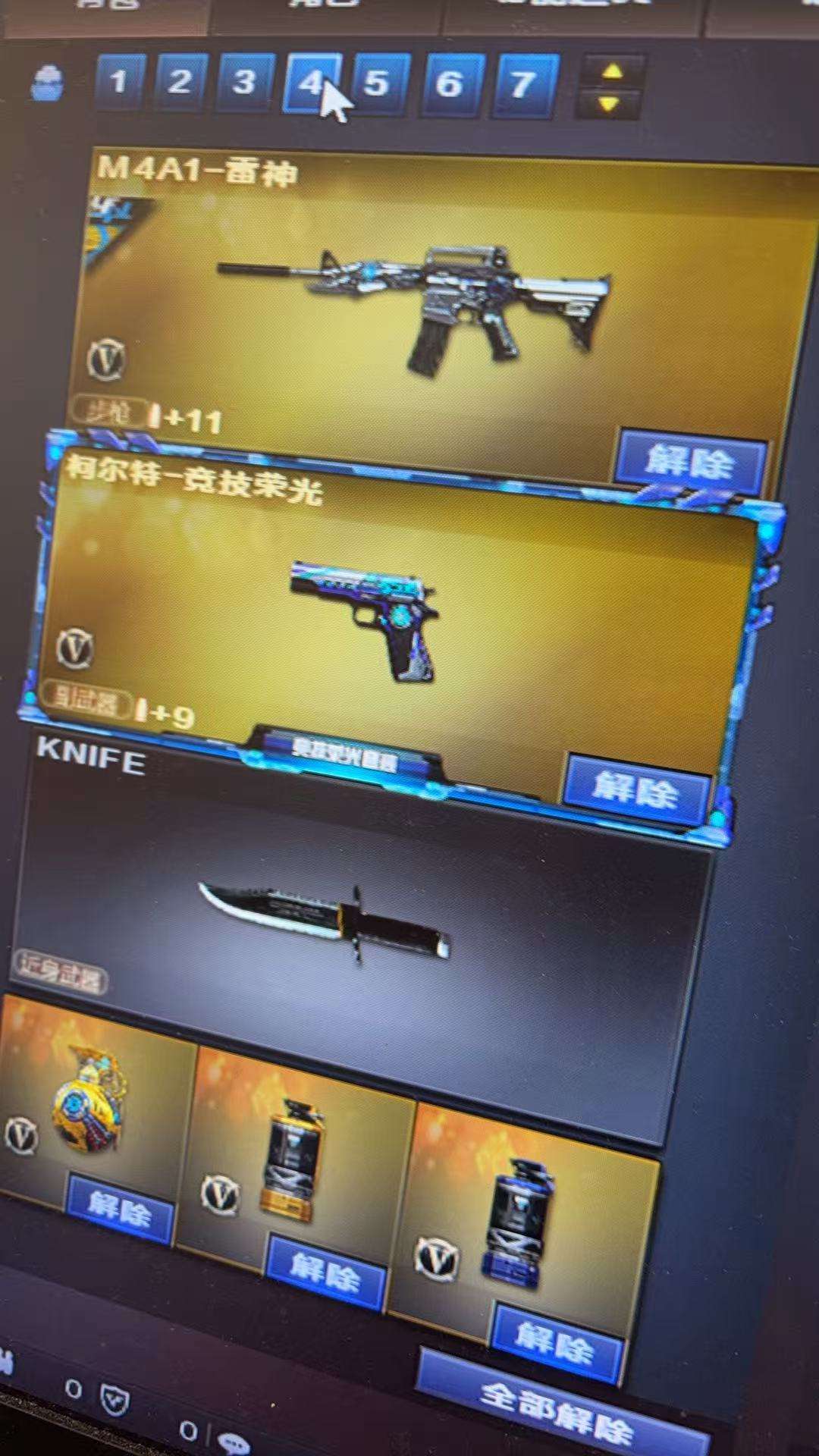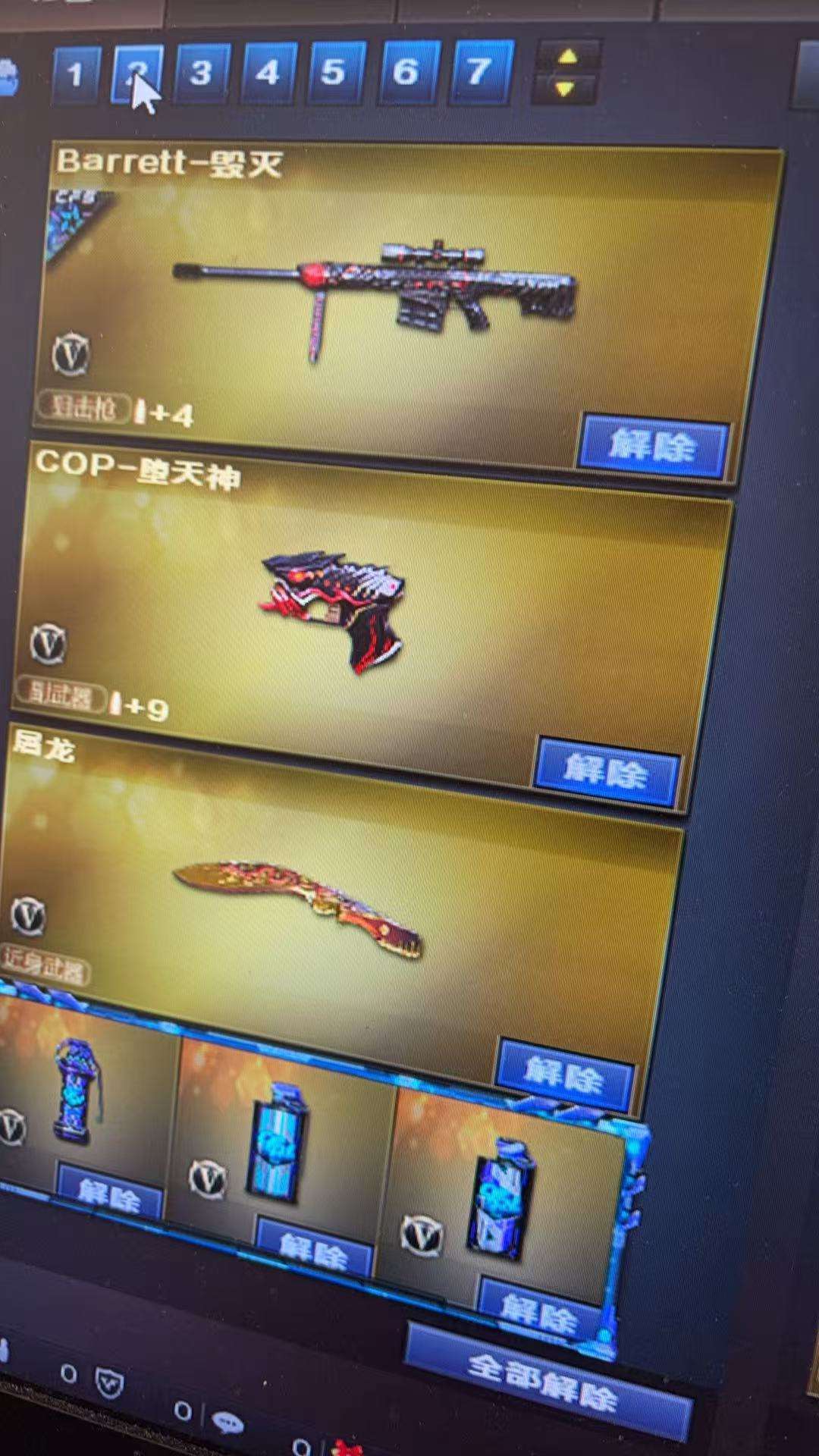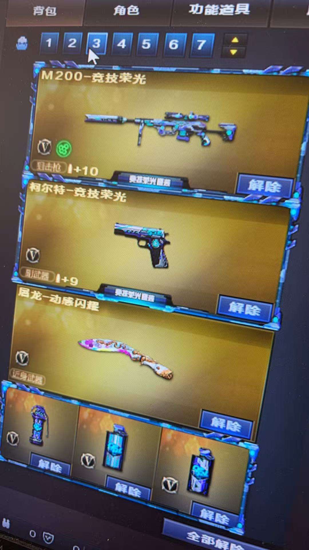 装备描述:竞技荣光全套 职业选手绝技语音包 王者葵貂蝉 四防机器人➕语音包 竞技荣光幻神 竞技荣光柯尔特 白鲨荣耀世冠qbz 荣耀之魄雷神 巅峰荣耀火麒麟 cfs2018➕2022毁灭等