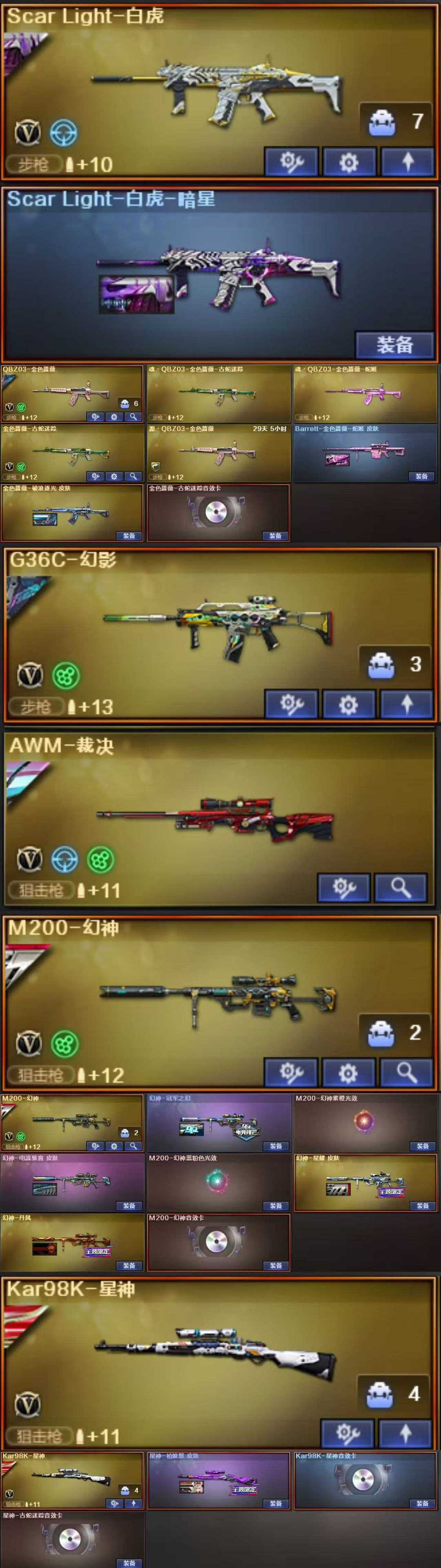 传说幽瞳 传说幽冥 幻神冠军套 星神套 G36C幻影 白虎 裁决 qbz金色蔷薇 精品排位爆破号