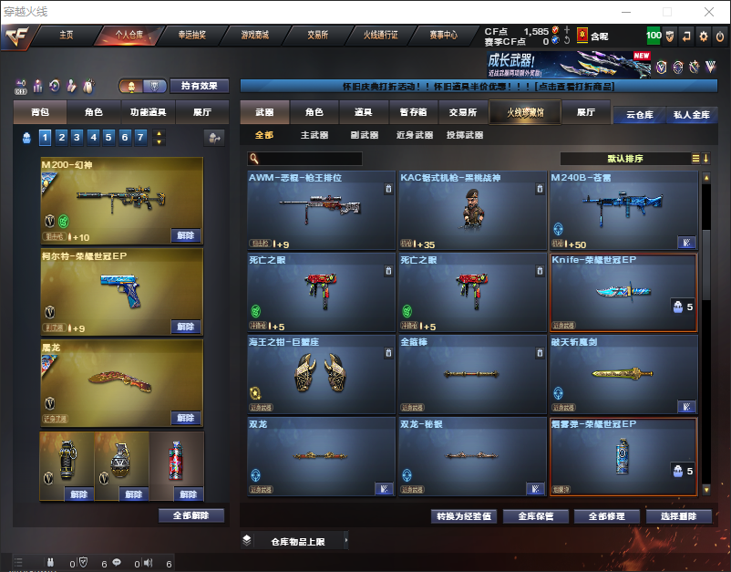 装备描述:幻神ep丹凤柯尔特ep三把cop两把USP一把常用武器齐全