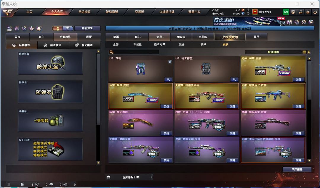 限制: 租号6次及以上 | 撤单率<25%才可租用此帐号装备描述:排位:可以 爆破四防:幻神3皮(星火、世冠白鲨、星耀)带光效,星神三件套(巅峰荣耀、枪娘默、黯钢战甲),裁决三件套(流光秘银、百城天津),USP雷暴、冥王,冠军之特,白鲨柯尔特,cop雷霆,QBZ金色蔷薇三件套,加利尔ace天袭/幻影带皮,电玩白虎,手雷齐全 生化:隼、毒蝰术士,炼狱酷酷小狮,炼狱,5盘龙,飓风双雄,生化皮肤齐全,弹夹齐全 不开挂随便怎么玩