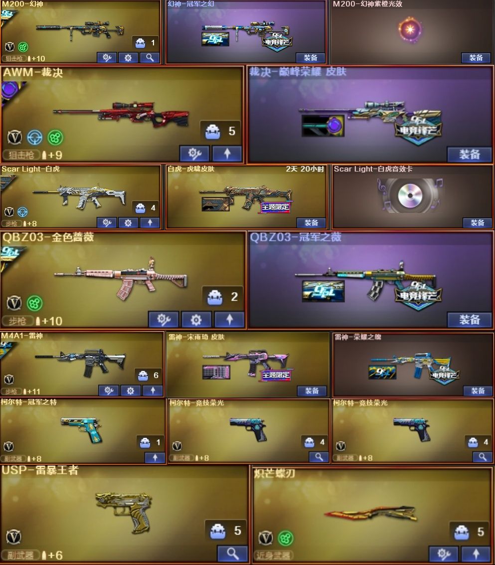 枪王4/26号【北部】幻神冠军皮⭐裁决巅峰荣耀皮⭐QBZ冠军皮+白虎⭐雷暴王者*1冠特*3蝴蝶刀