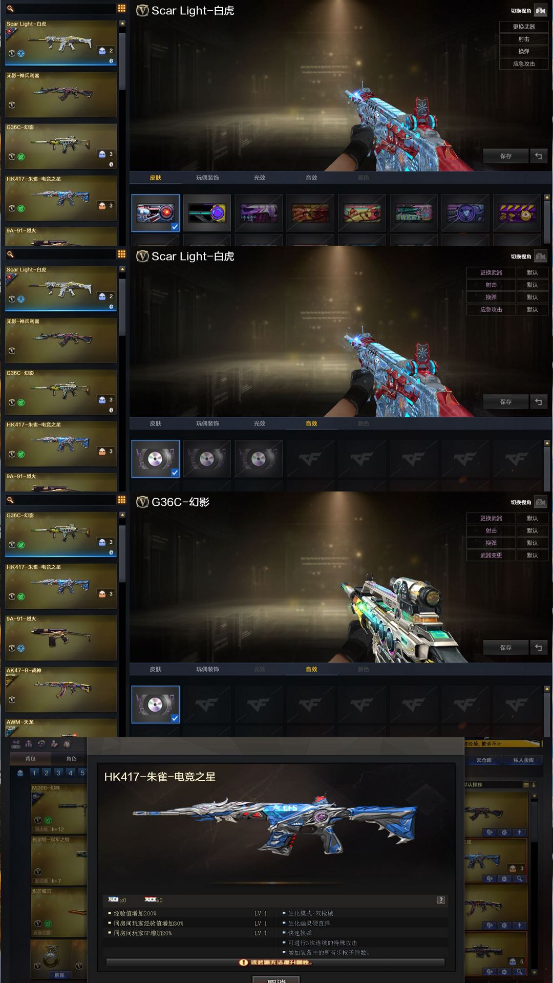 幻神KZ冠军薇特刃✨炽芒蝶刃G36幻影带卡✨裁决三件套白虎拼搏✨10音效卡全赛事皮✨满副手全道具