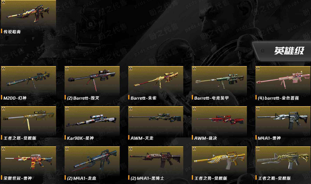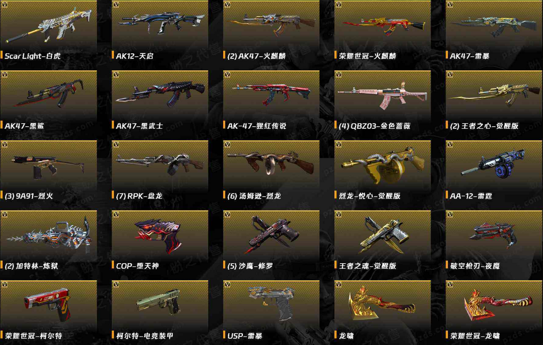 幻神冠军电竞丶98k星神白虎qbz八面凌龙丶6盘6炼狱6烈蝴蝶丶雷暴套装甲套丶暗裔沙漠玫瑰丶5质量副