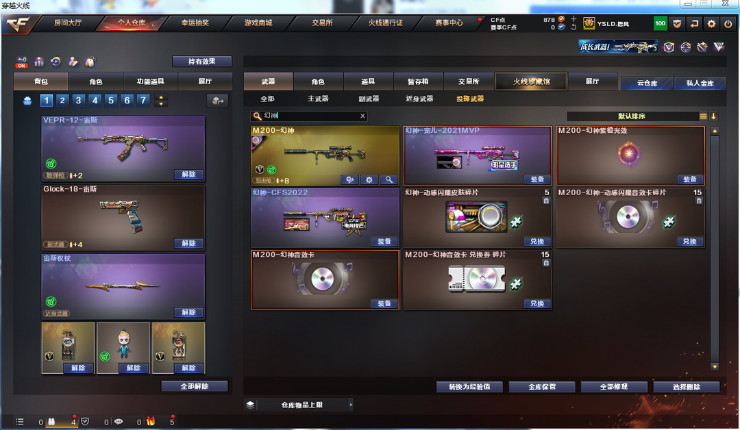 装备描述:宙斯套宠儿2022幻神音效卡双皮肤6烈蝴蝶2盘炼狱QBZ白虎裁决朱雀冠军怒魄幻毁黑三音效卡生化套挑战满套装