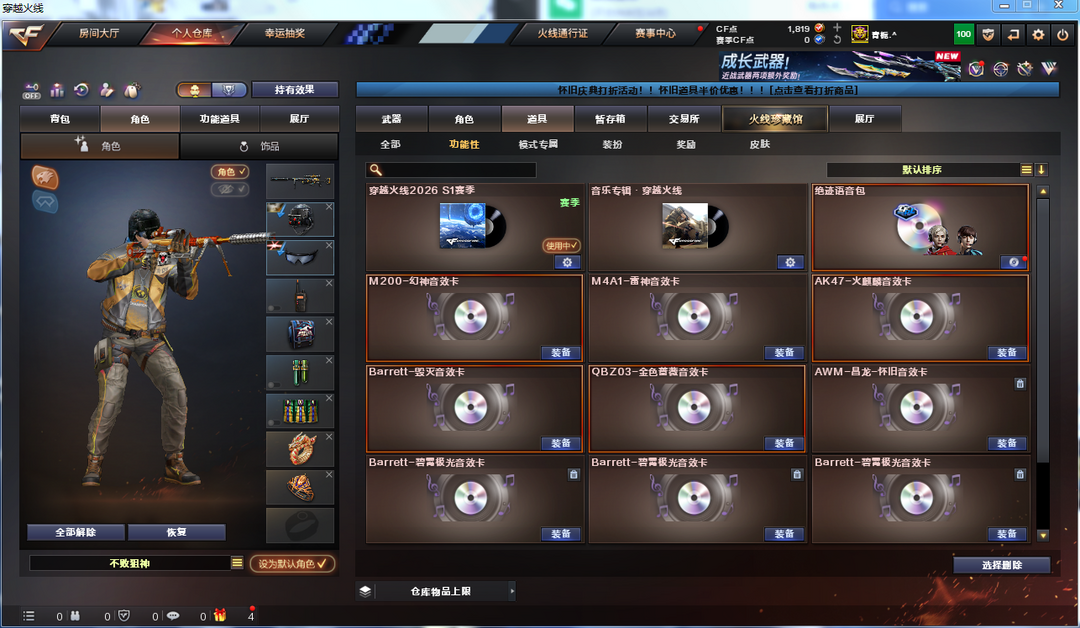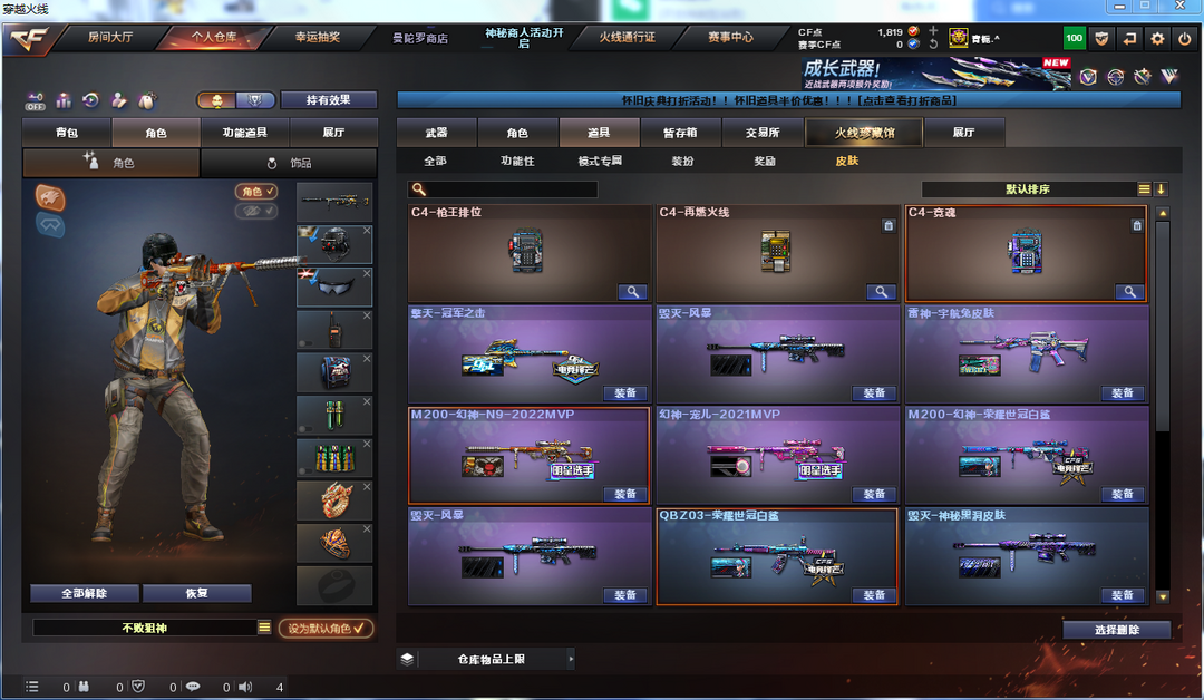 装备描述:宠儿N9荣耀世冠白鲨三皮肤幻神音效卡QBZ竞魂裁决白虎6烈幻灵套满i音效卡多皮肤挑战满套装