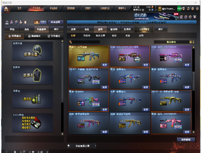 装备描述:宠儿AG幻神音效卡双皮肤百V6烈生化套QBZ白虎裁决MVP-N9七冠军六音效卡雷霆COP挑战满套装