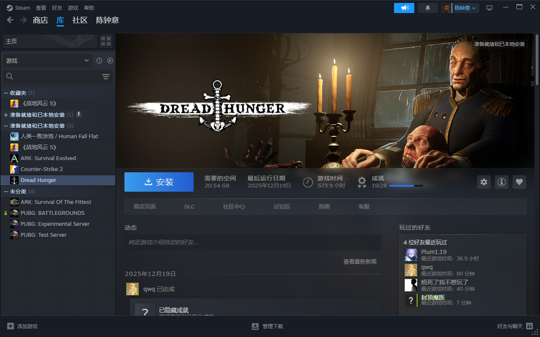 装备描述:steam游戏:【恐惧饥饿Dread Hunger】战地风云5♐方舟:生存进化顶配版全DLC♐人类一败涂地♐到时继续♐