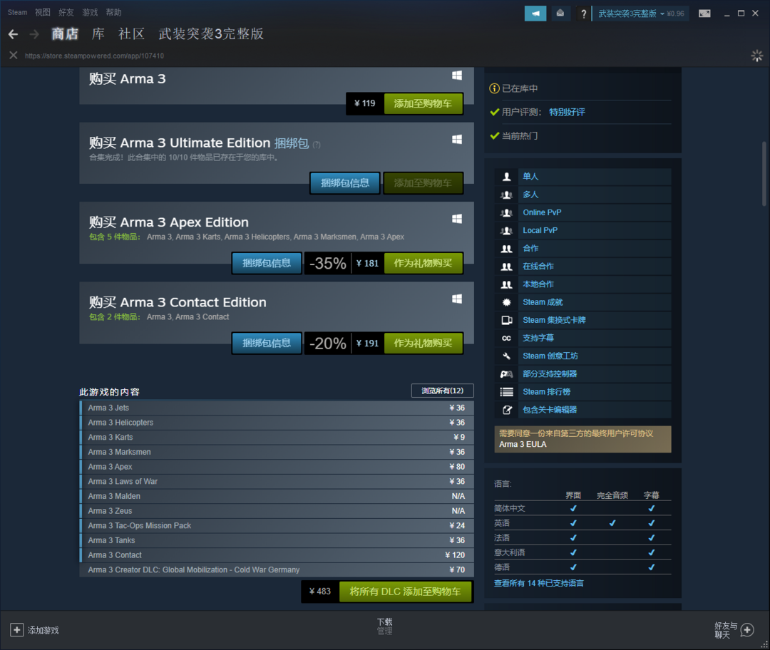 装备描述:《武装突袭3》豪华版-包含:《全球冷战:德国》独立DLC!顶级体验!