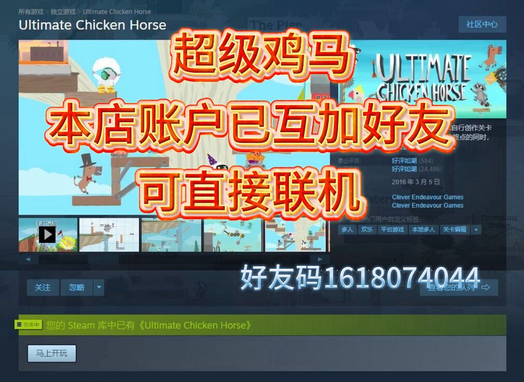 限制: 撤单率<50%才可租用此帐号装备描述:超级鸡马♋️终极版⭐️Ultimate Chicken Horse⭐️正版可联机⭐️合作闯关