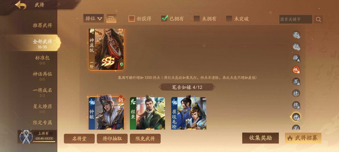 装备描述:三国杀十周年出租,钟毓神庞统袁胤庞弘乐貂蝉乐祢衡吴班陈硅陈氏马钧刘永(传说皮)张奂刘巴胡遵将灵sa传说关索精品号谋黄盖一系列将符的武将