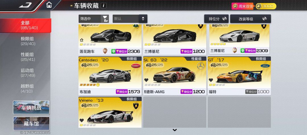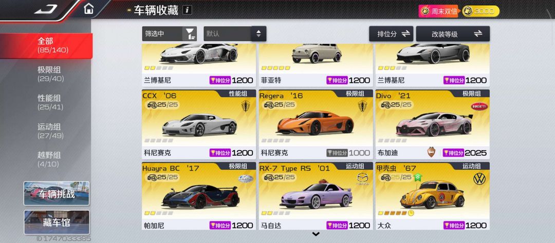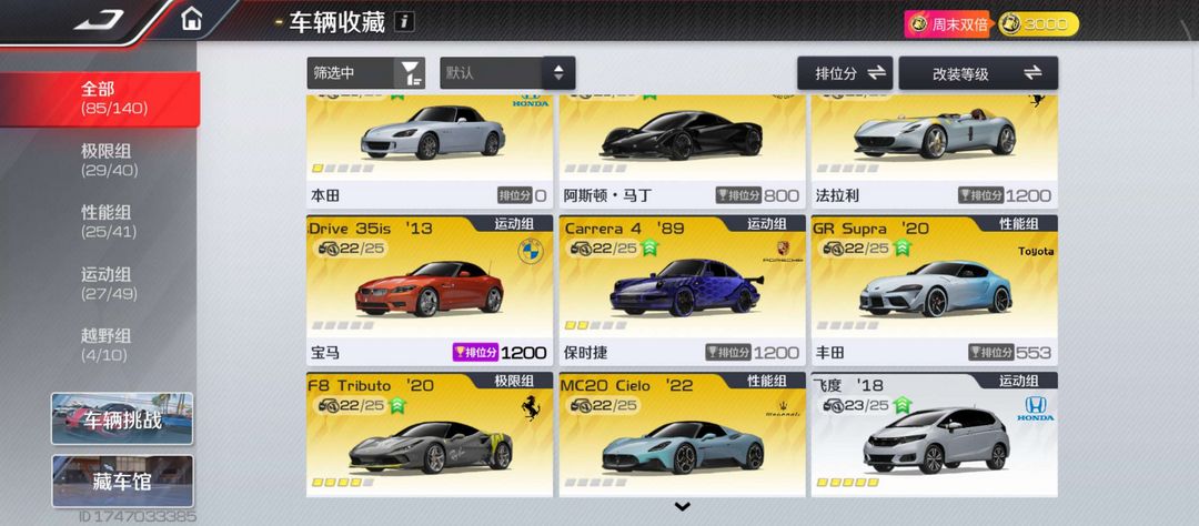 赛车总数:85