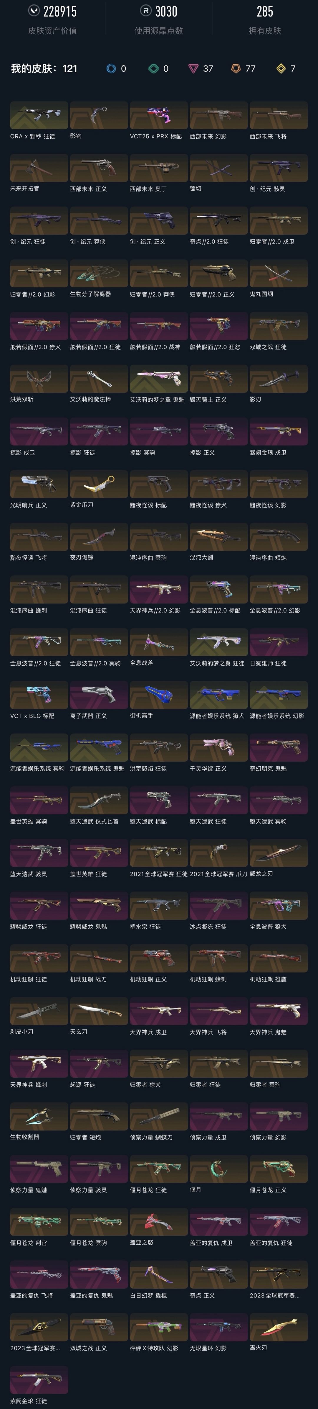 武器皮肤数量:285