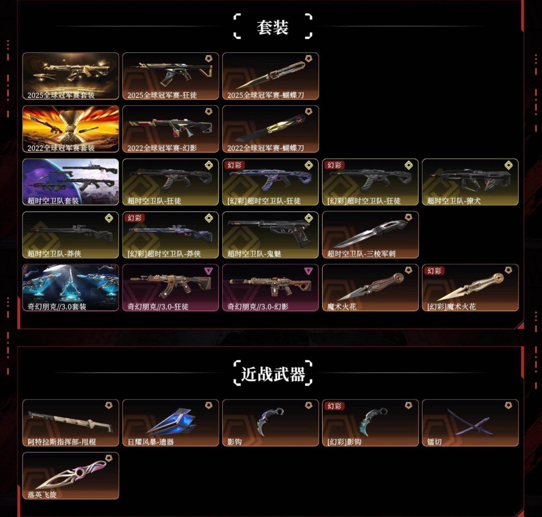 【超时空卫队套装】25冠军套22冠军套⭐镭切落英火花影钩⭐11把热门主战⭐猫咪混沌塑水盖亚紫阙等⭐