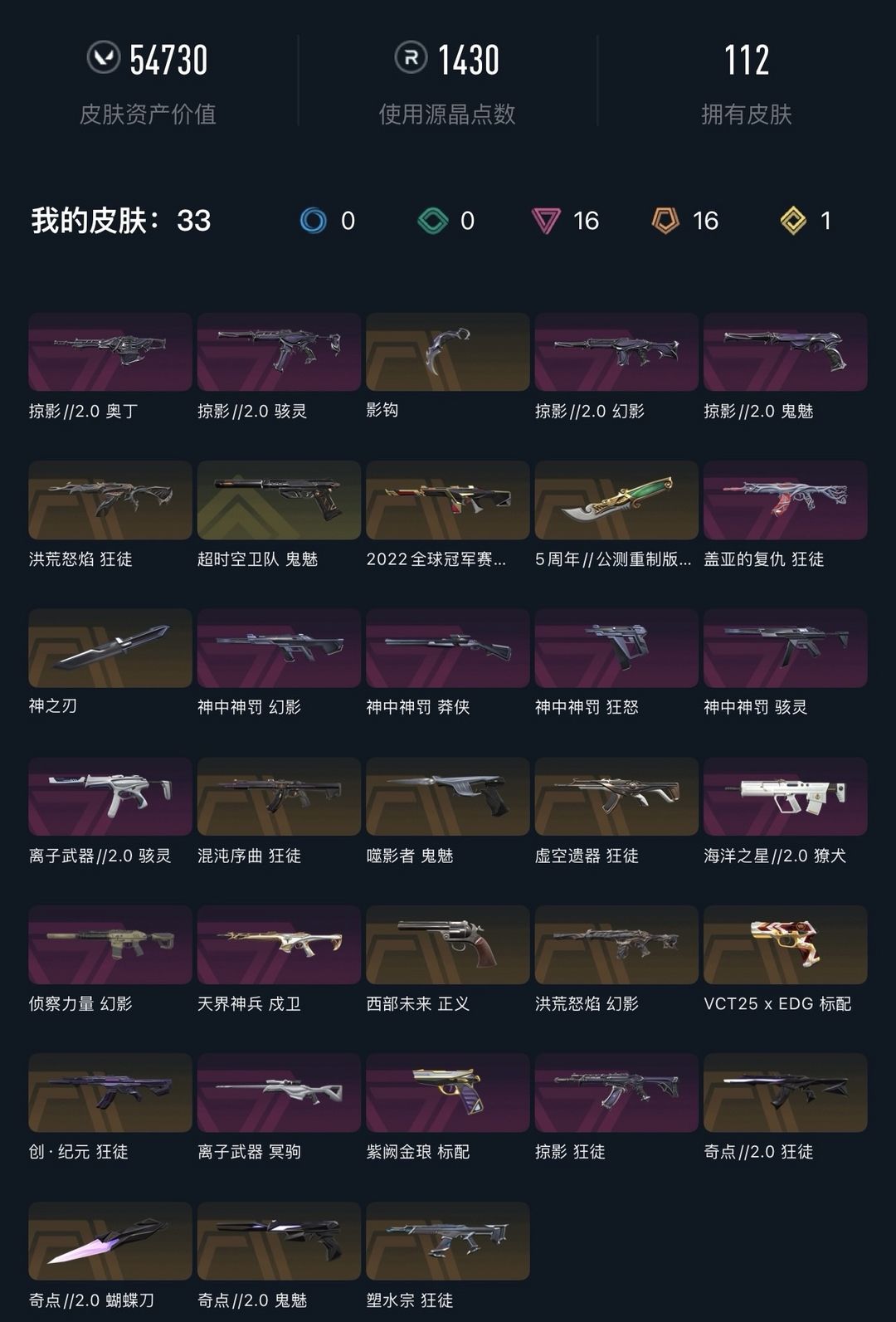 武器皮肤数量:114