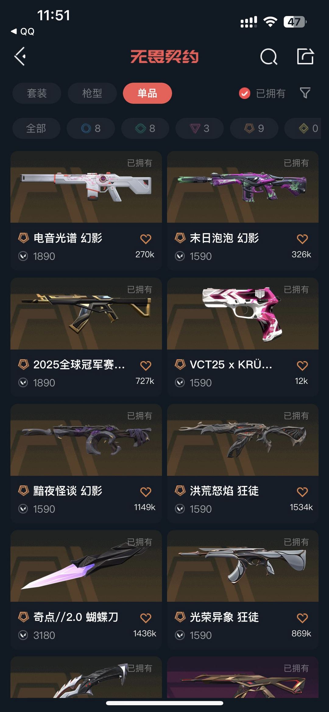 【冻结重上】25冠军❤️奇点2.0蝴蝶刀❤️电音光谱末日泡泡幻影❤️光荣异象盖亚的复仇狂徒