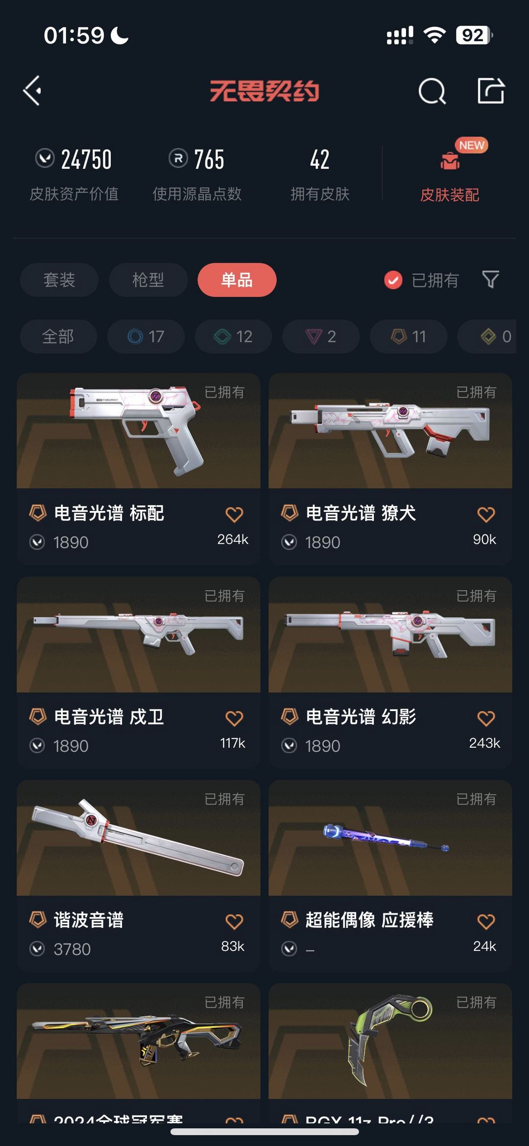武器皮肤数量:42