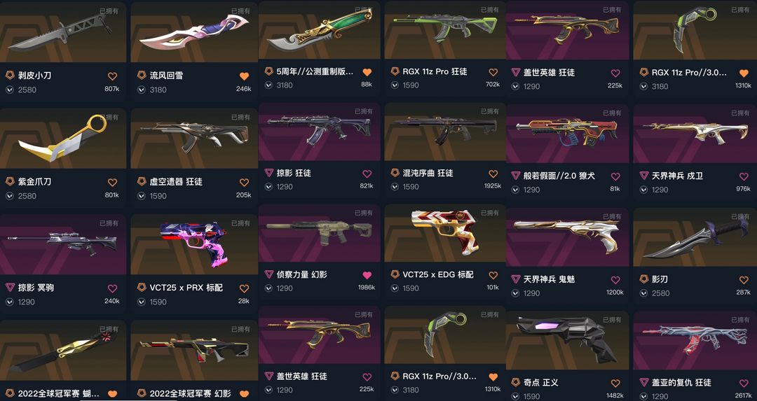 武器皮肤数量:71