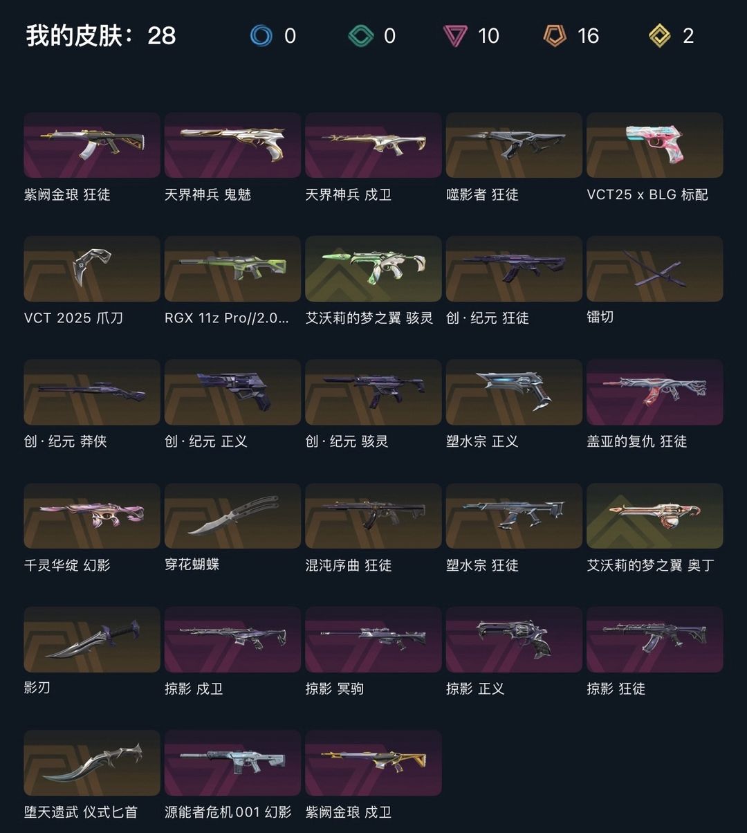 可排✅VCT爪刀⚡噬影者⚡镭切创纪元⚡掠影⚡盖亚⚡紫阙金琅⚡天界⚡源能者危机⚡VCT25标配