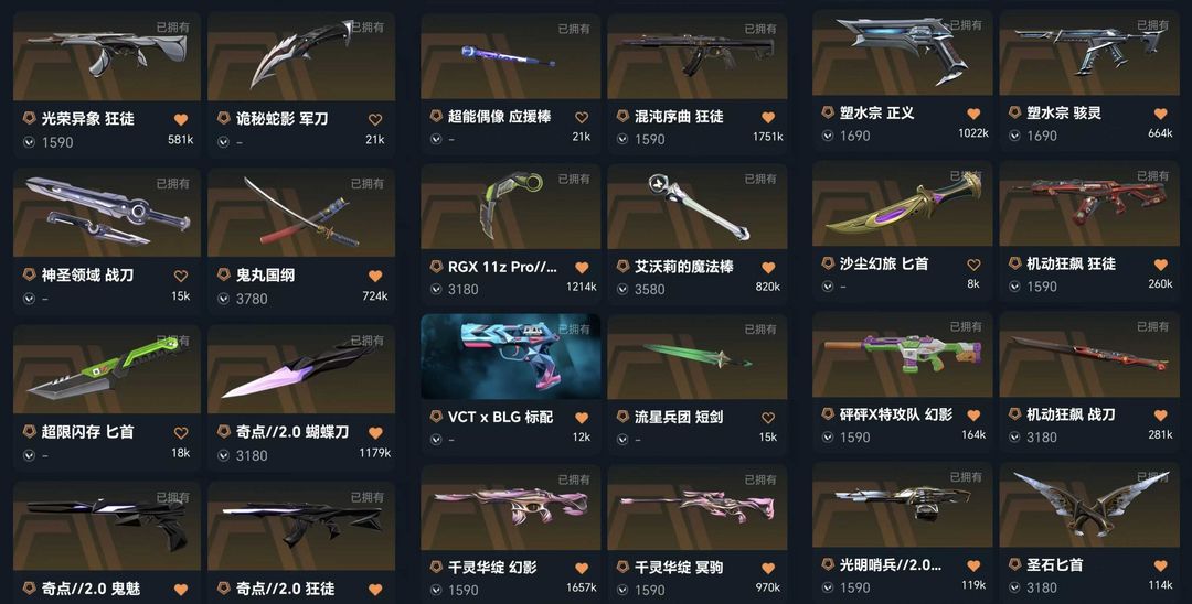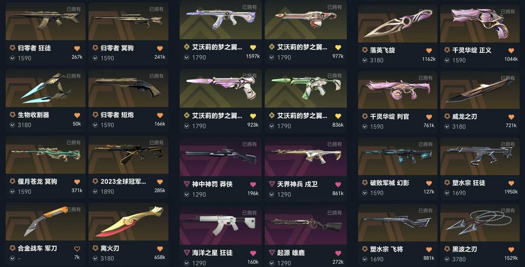 可排2000R点离火刃✨塑水宗套✨千灵花绽套✨梦之翼套✨归零者套✨23冠军狂徒✨显卡爪✨威龙之刃✨