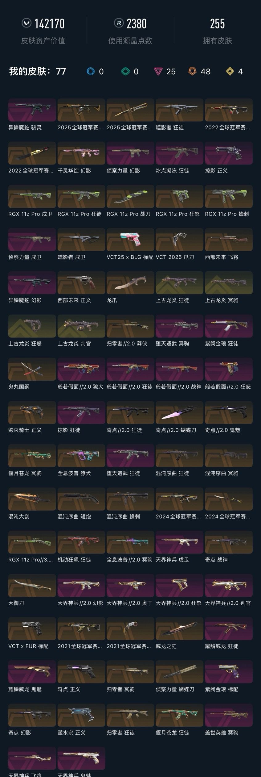 可排✅高端15万库存❤️21冠军套满限定❤️25冠军噬影者紫金掠夺混沌弃王❤️西部未来侦察vct爪刀