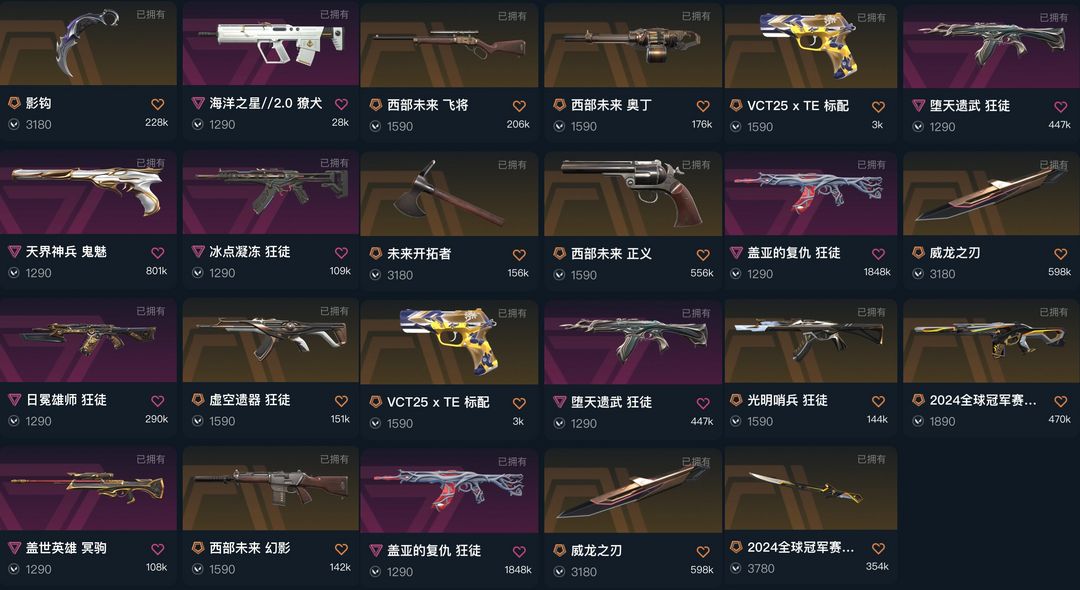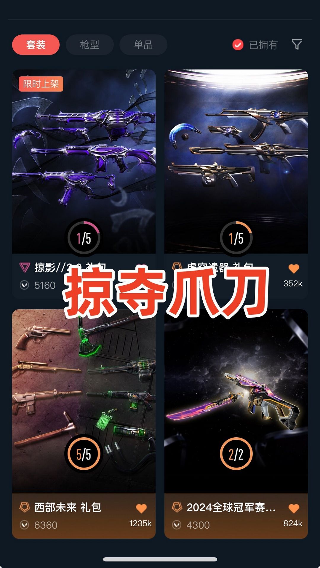 可排★掠夺爪刀影钩★24冠军套★西部未来★盖亚冰点虚无弃王狮子狂徒★威龙之刃★天界鬼魅vct标配猴子